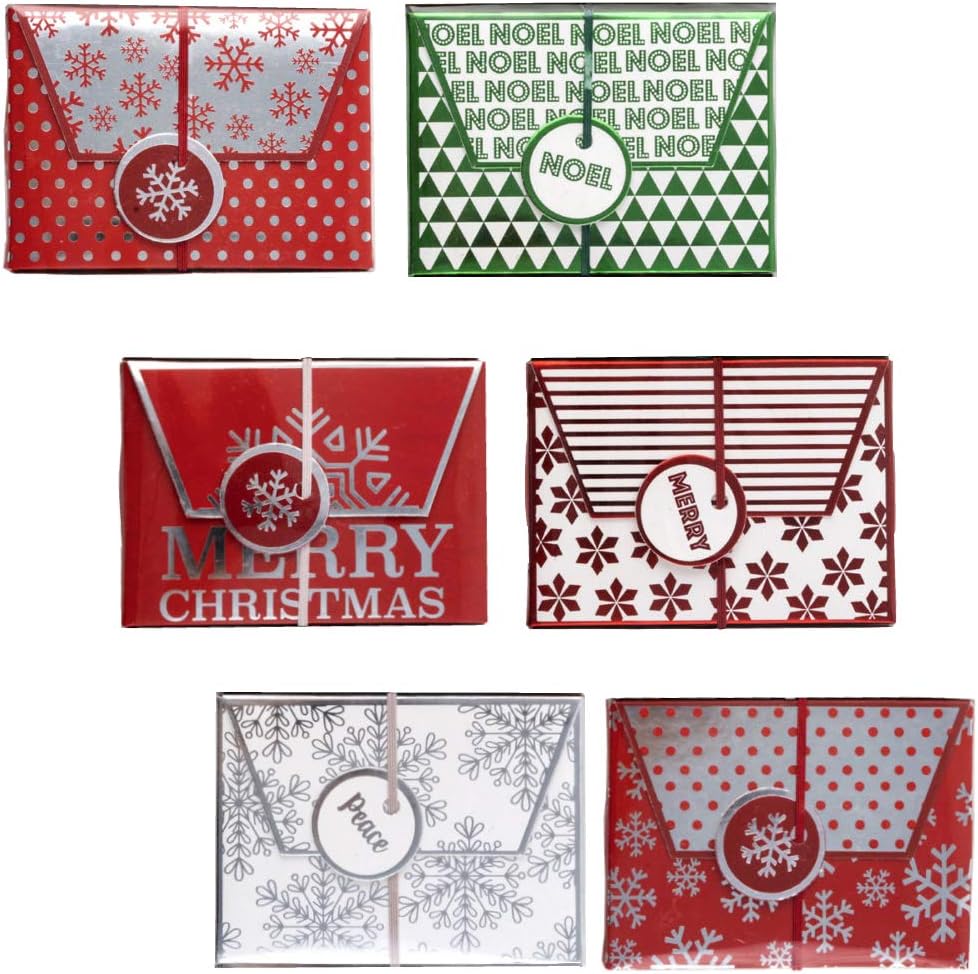 مجموعة من 6 صناديق حامل بطاقات هدايا أنيقة مصممة للعطلات مع ختم من الرقائق المعدنية