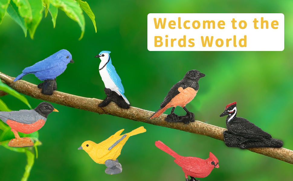 Newmemo لعبة شخصيات الطيور 7 قطع تماثيل الطيور الصغيرة للأطفال الطيور كعكة كب كيك توبر مصغرة الطيور الحيوان الشكل أوريول روبن الكاردينال الطيور لعبة تعليمية الطيور كعكة الديكور الفناء الخلفي الطيور اللعب