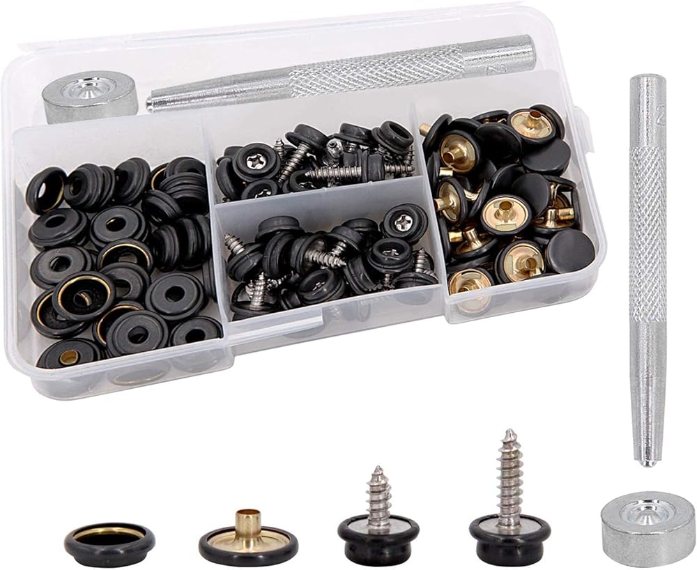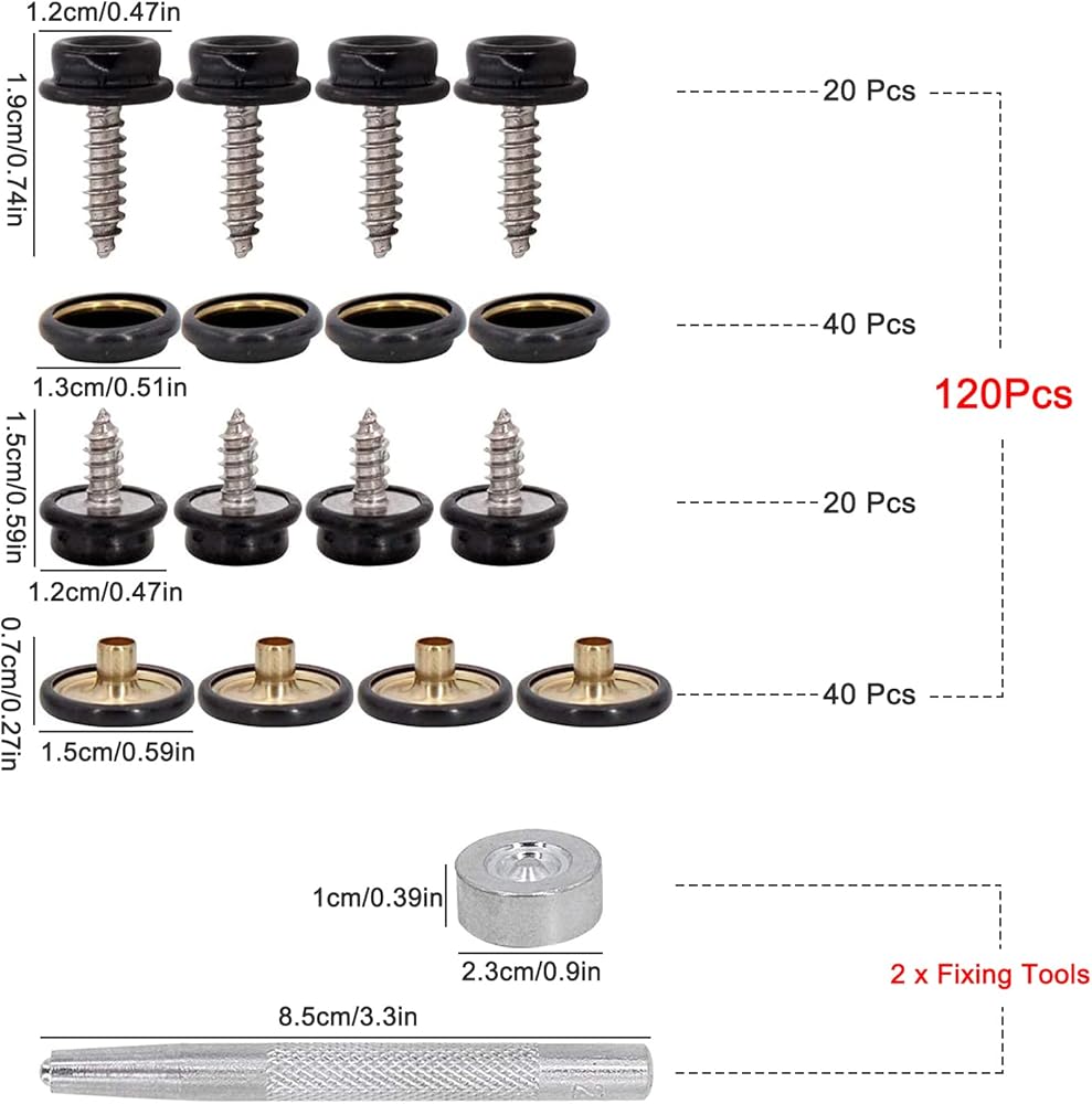 مين هوو مشابك براغي تثبيت، 120 قطعة من البراغي البحرية من الستانلس ستيل لغطاء القارب، مجموعة اصلاح غطاء قماش القارب للاثاث قماش القوارب، مع قطعتين من ادوات التثبيت