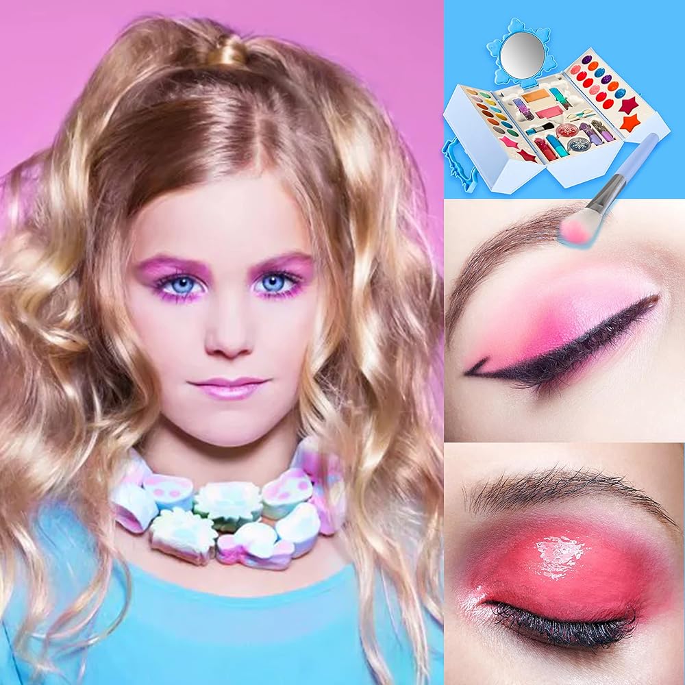 مجموعة مكياج للأطفال للفتيات - مجموعة مكياج بيلوتشيدو 45 قطعة قابلة للغسل مع حقيبة مستحضرات تجميل للأطفال من سن 3 إلى 5 سنوات، مجموعة مكياج للعب التظاهري هدية عيد ميلاد للفتيات بعمر 4-5 سنوات