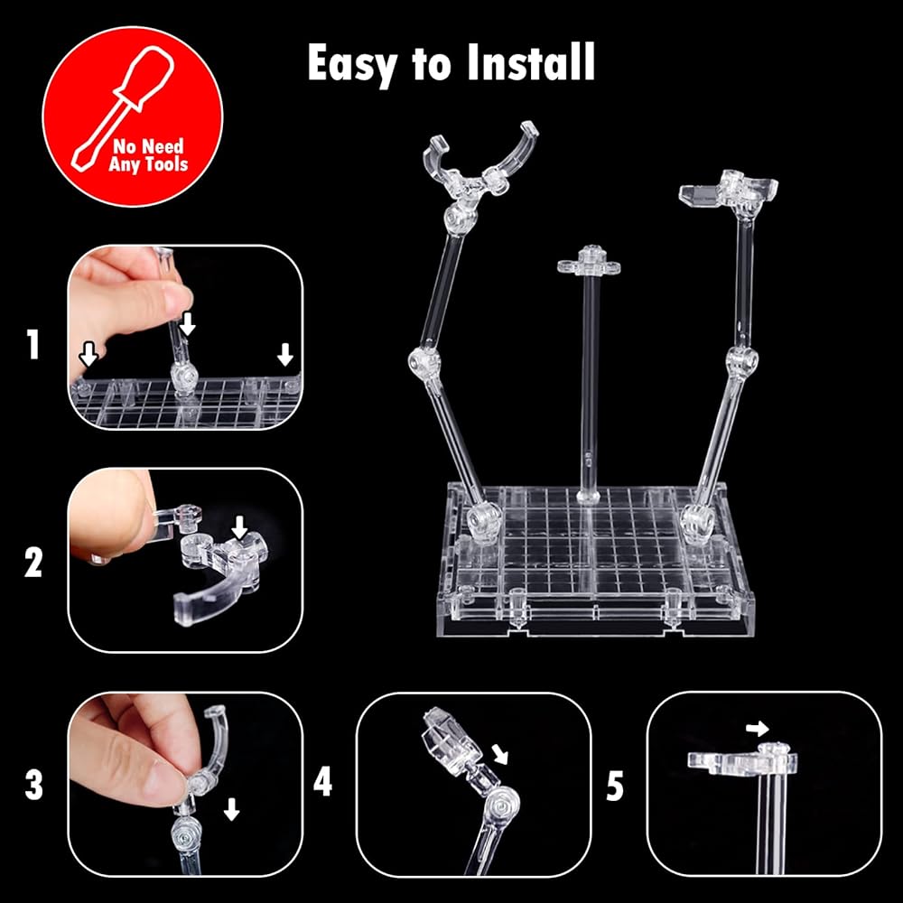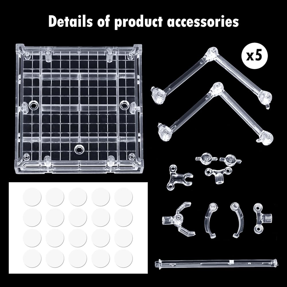 ميجفين حامل لشخصيات الاكشن 3 في 1 من 5 قطع، حامل عرض لشخصيات الاكشن وقاعدة دعم نموذج الدمية متوافق مع اتش جي اس اتش اف جاندام ام جي 1/100 ار جي 1/144 اس دي 1/144 حامل دمية لعبة شفاف