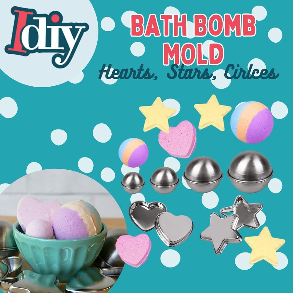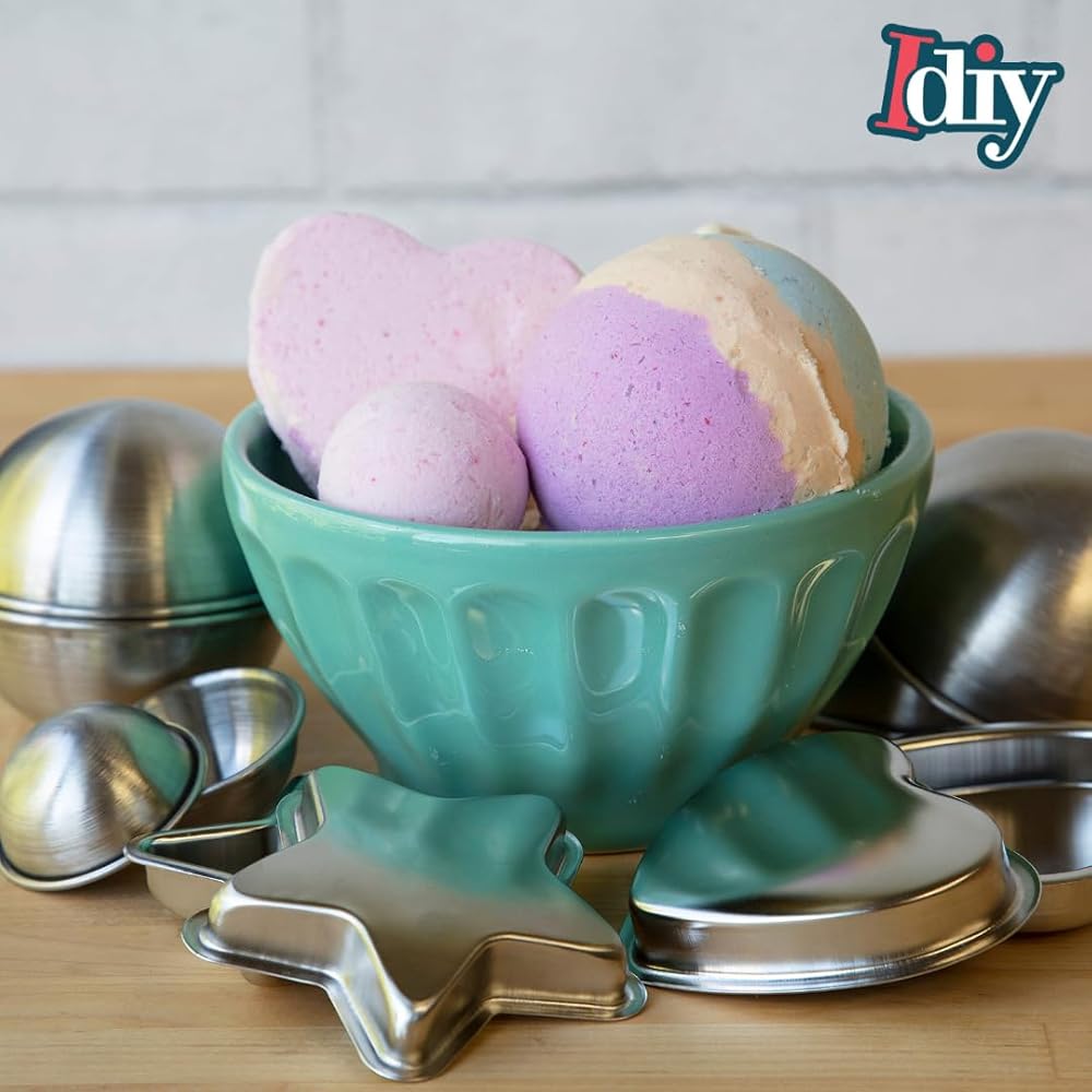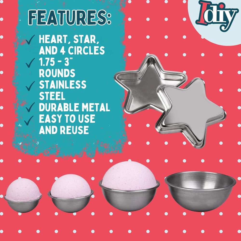 قالب حمام قنابل وصابون من IDIY ، مجموعة من 6 أشكال - قلب، نجمة، و4 دوائر (S، M، L، XL - 4.4 سم - 7.6 سم دائري) - ألومنيوم ومعادن من الفولاذ المقاوم للصدأ - الحرف اليدوية، لوازم صنع الصابون، شمعدان كبار السن، هدية تس