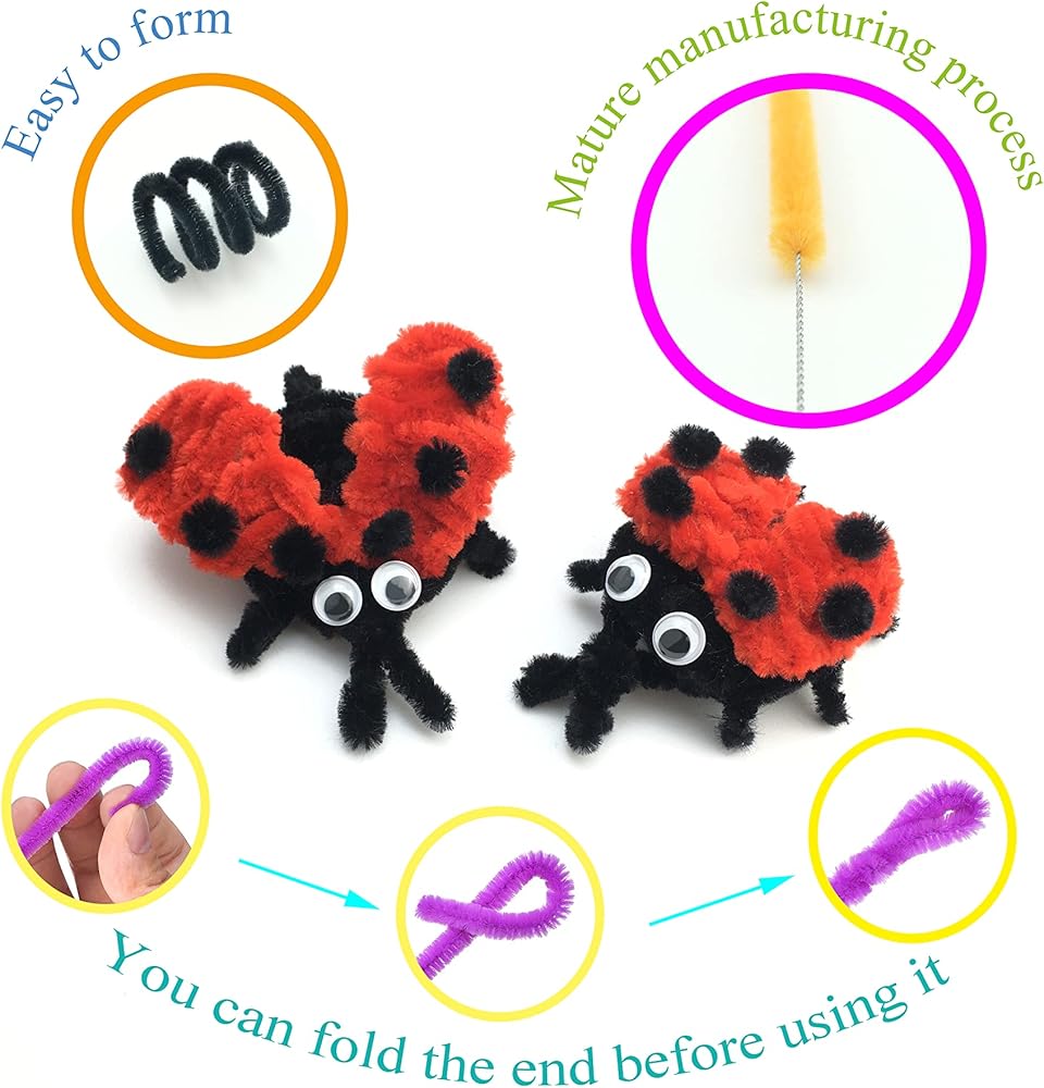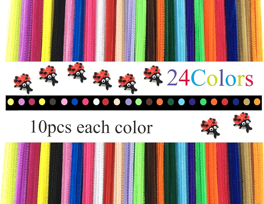 One package has 24 colors: White,Light pink,Deep powder,Red,Pink,Rose Red,Orange,Red lilac,Deep lilac,Fluorescent green,Fruit Green,Dark green,Fluorescent Yellow,Pale yellow,Golden,Old Golden,Light purple,Light sky blue,Deep sky blue,Sapphire blue,Light coffee,Dark coffee,Snow,Black. Each color 10 pieces. This package contains 240 Chenille Stems that measure 12 inches long by 6 mm wide. The chenille stems come in bright,assorted colors,so you'll always have the color you need. With Creativity Street products,you can let your imagination shine! Note: For children under the age of 12, please use under adult supervision.Notice: This item should not be use by young children. Adult supervision is required and adult assistance may be needed. Please put it out of young children's reach.Notice: 1.We do not wholesale To other sellers,so there should be NO other sellers. Any other sellers are selling their own products using our Listing. Purchasing from any other sellers will get a potentially faulty product that may be unsafe and cause injury. 2.Please!Be sure to purchase this product from the "HoneyToys" to avoid any problems with your product, and to ensure both your safety and satisfaction. 3.Manufacturer's * included only when purchased from "HoneyToys". 4.IF you find any problems about our products, please let us know as soon as possible, We will do our best to serve you!100% refund if there is any quality problem.