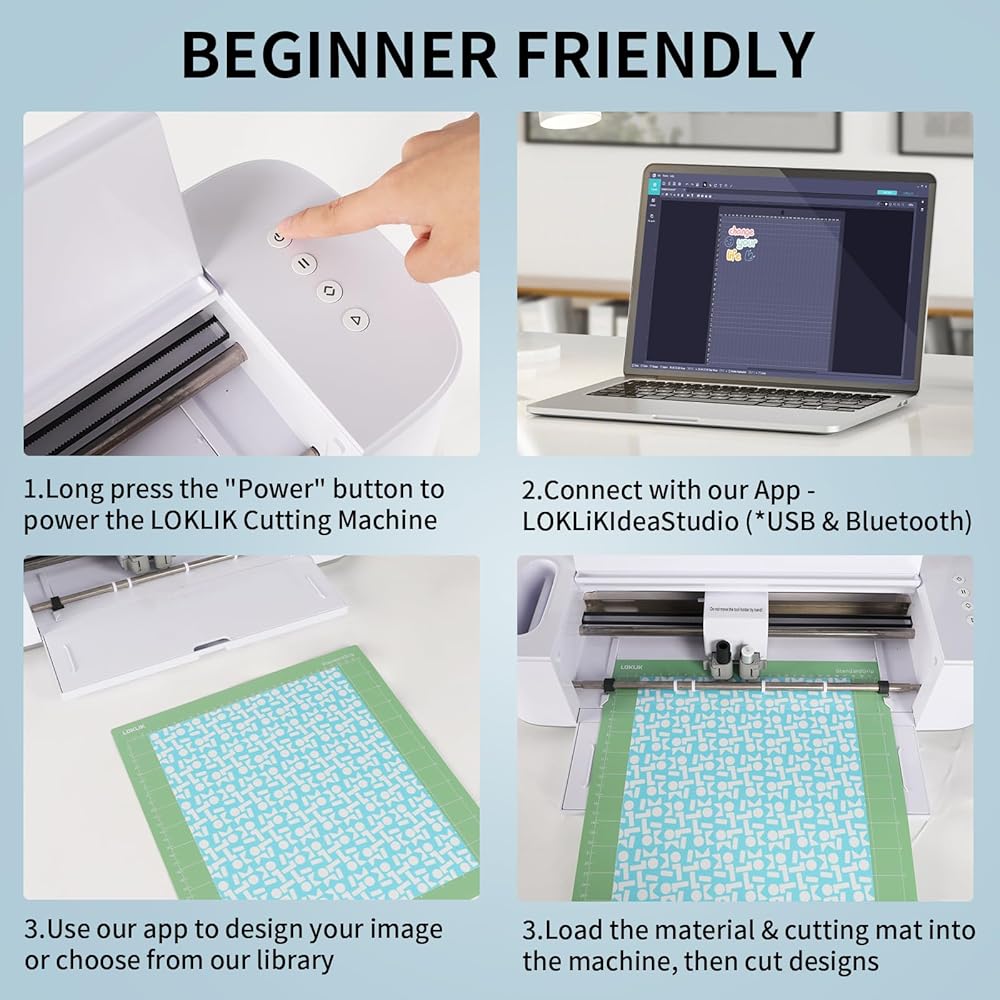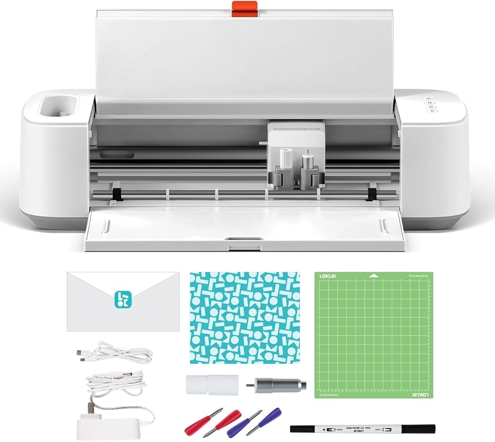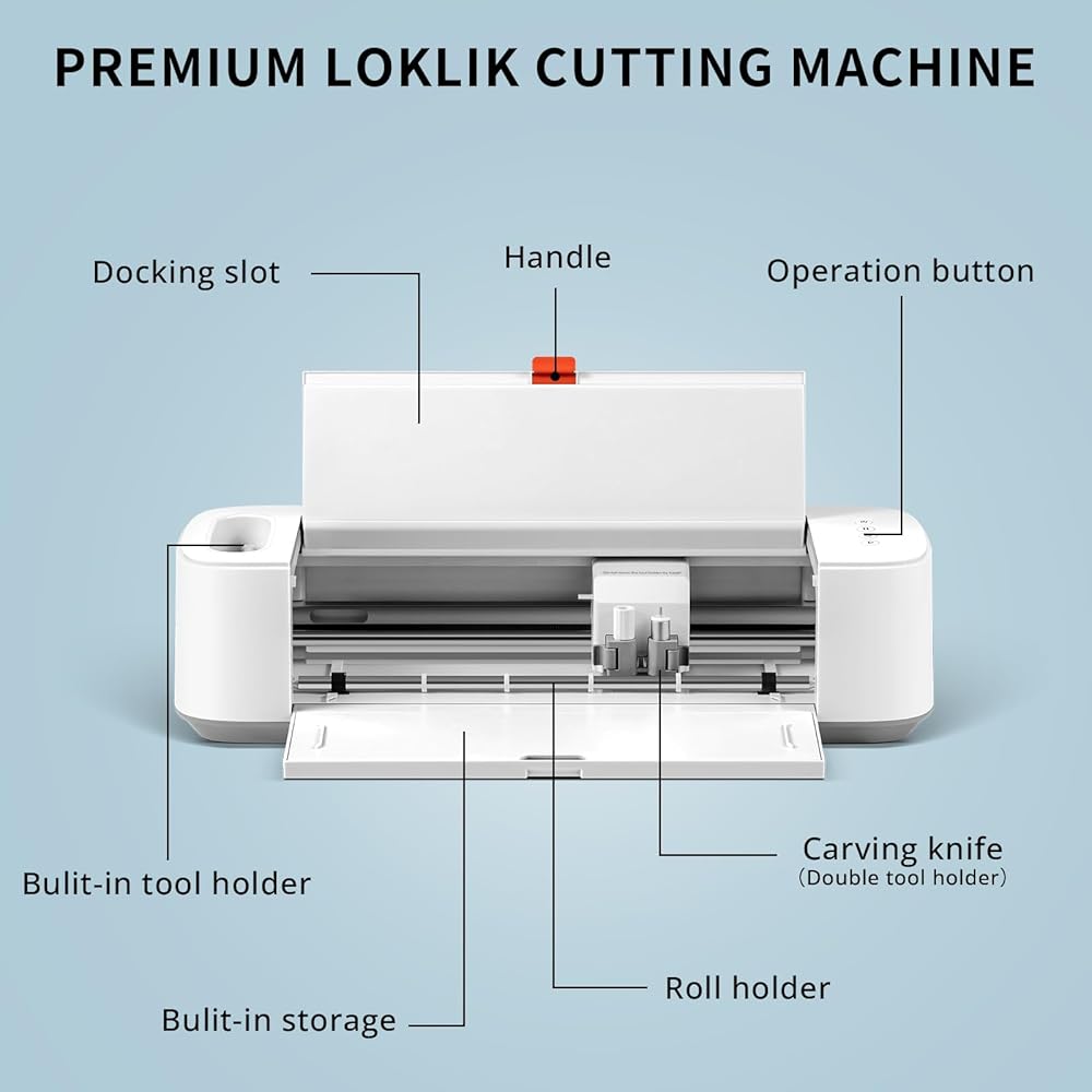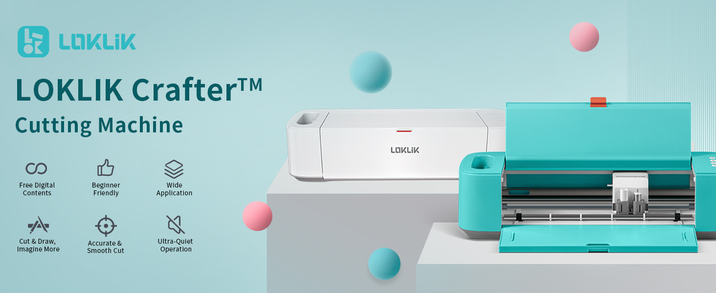 LOKLiK Crafter is the perfect cutting machine for beginners venturing into the world of handicraft activities. This cutter stands out with its noiseless operation and impeccable precision in cutting. it excels in both cutting and writing characteristics. The machine cuts 100+ materials, including cardstock, vinyl, iron-on, glitter paper, cork, and bonded fabric. With wireless Bluetooth connectivity and a cloud-based app, get access to thousands of customizable designs and templates. Through the connected app, LOKLiK IdeaStudio, LOKLiK Crafter can flawlessly complete the cutting process of ongoing images even without an Internet connection. LOKLiK cutting machine for cricut vinyl is easy to set up and use. This writing and cutting machine helps you make more in less time, so you'll find yourself personalizing, organizing, and customizing every single day. Working with multiple LOKLiK Crafter devices simultaneously allows every crafter to enhance their efficiency, especially when crafting in bulk. In addition, enjoy a quieter crafting experience with LOKLiK Crafter's upgraded noise-canceling technology, reducing gear noise to a mere 60 dBa, making it 15% quieter than regular machines. Craft day or night without worrying about disturbing your neighbors. Turn your inspiration board intentions into action with a little help from your partner - the LOKLiK cutting machine. Cut vinyl decals for custom water bottles or wall decor. Quickly make kitchen or office labels. Bust out a birthday banner or a just-because card. Note: The cutting machine 45°and 60° blades are not compatible with silhouette, also the deep and fine blades are not suiable for cricut.