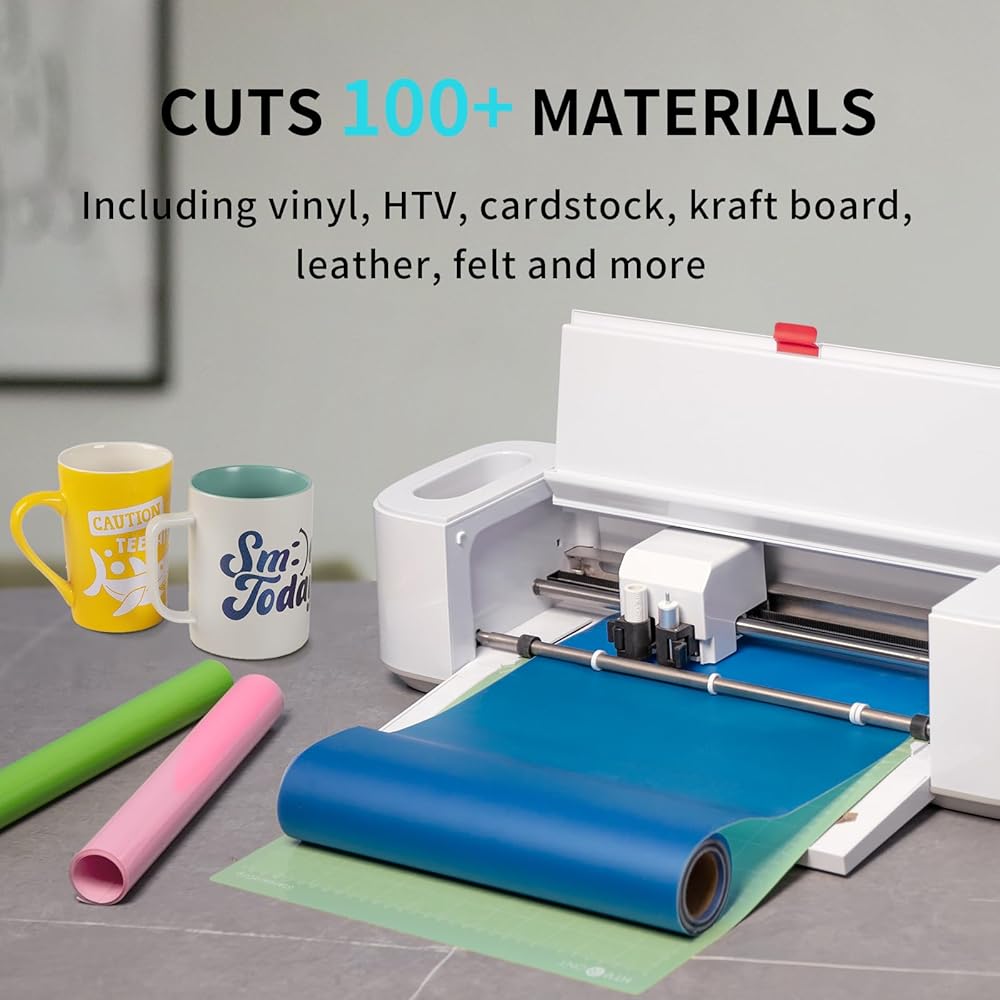【COMPATIBLE WITH 100 plus MATERIALS】 The LOKLiK vinyl cutter machine is compatible with multiple materials. Our cutting machine is equipped with an upgraded motor and the advanced “Print Then Cut” feature, which can make precise, intricate cuts variety of materials from a variety of popular materials like cardstock, vinyl decals, HTV iron-on, glitter paper, Infusible Ink, etc. A great cutting machine for HTVRONT heat transfer vinyl, for HTVRONT permenent vinyl, for HTVRONT cutting mat and more.