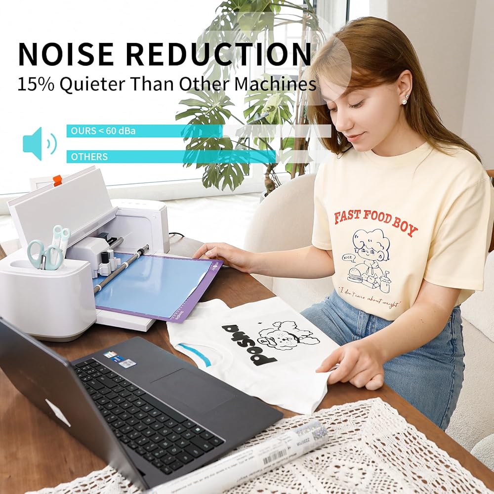 【COMFORT EXPERIENCE AND CREATE】Enjoy a quieter crafting experience with LOKLiK Crafter's upgraded noise-canceling technology, reducing gear noise to a mere 60 dBa, making it 15% quieter than regular die cutting machines. Use our cutting machine to make a custom t-shirt, one-of-a-kind birthday cards, a personalized mug, home decor, indoor or car decals, wall signs, and more!