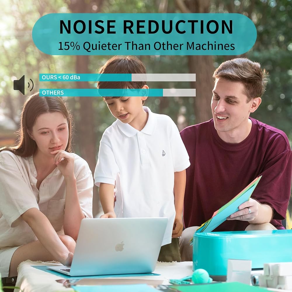 🌞【COMFORT EXPERIENCE AND CREATE】Enjoy a quieter crafting experience with LOKLiK Crafter's upgraded noise-canceling technology, reducing gear noise to a mere 60 dBa, making it 15% quieter than regular die cutting machines. Use our cutting machine to make a custom t-shirt, one-of-a-kind birthday cards, a personalized mug, home decor, indoor or car decals, wall signs, and more!