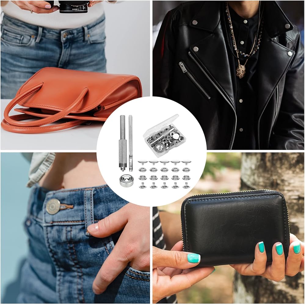 تشتمل العبوة على: سوف تحصل على مجموعة من الأزرار المعدنية، بما في ذلك 10 قطع من أغطية الأزرار، و10 قطع من مقابس الأزرار، و10 قطع من الأعمدة، و10 قطع من المسامير، و1 قطعة من قاعدة التثبيت، و1 قطعة من الأدوات المقعرة، و1 قطعة من الثقب المجوف، وكلها معبأة في علبة بلاستيكية من أجل تخزين سهل. كمية كافية لاحتياجاتك في تركيب واستبدال الأزرار.