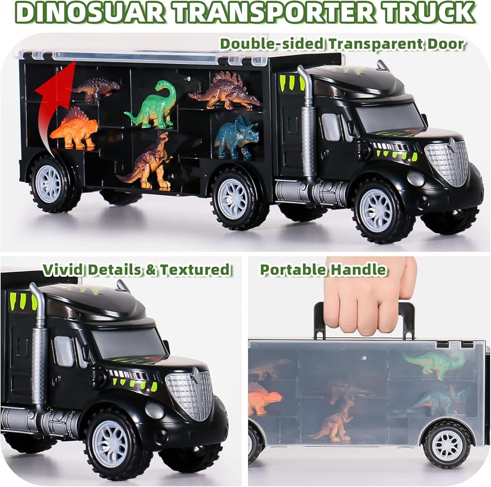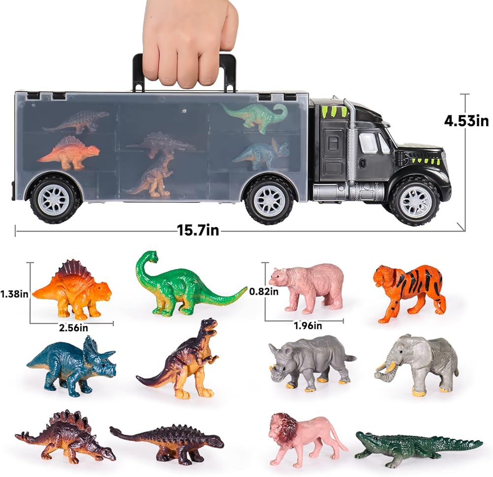 💘【مصممة بمقبض محمول: سهلة الحمل والتخزين】تحتوي شاحنات الديناصورات للأولاد من سن 3 إلى 5 سنوات على مقصورتين للأطفال لنقل ألعاب الديناصورات الصغيرة الخاصة بهم للأولاد والبنات. مصممة بمقبض محمول، يمكن للطفل أن يأخذ ألعاب السيارة وألعاب الأولاد الصغار وألعاب البنات الصغار معهم بسهولة أكبر، مما يجعلها أكثر ملاءمة كألعاب داخلية وخارجية للأطفال من سن 3 إلى 5 سنوات. ألعاب الحيوانات للأطفال من سن 3 إلى 5 سنوات هي هدية رائعة للأطفال. لعبة الشاحنات المثالية للأولاد بعمر 3 سنوات للأولاد من سن 2 إلى 5 سنوات.