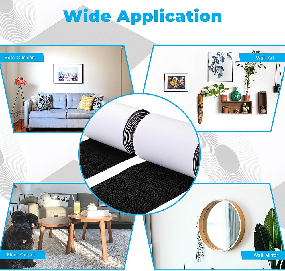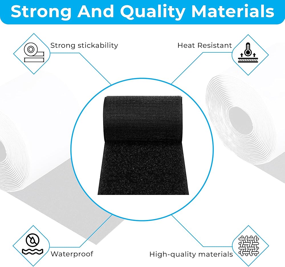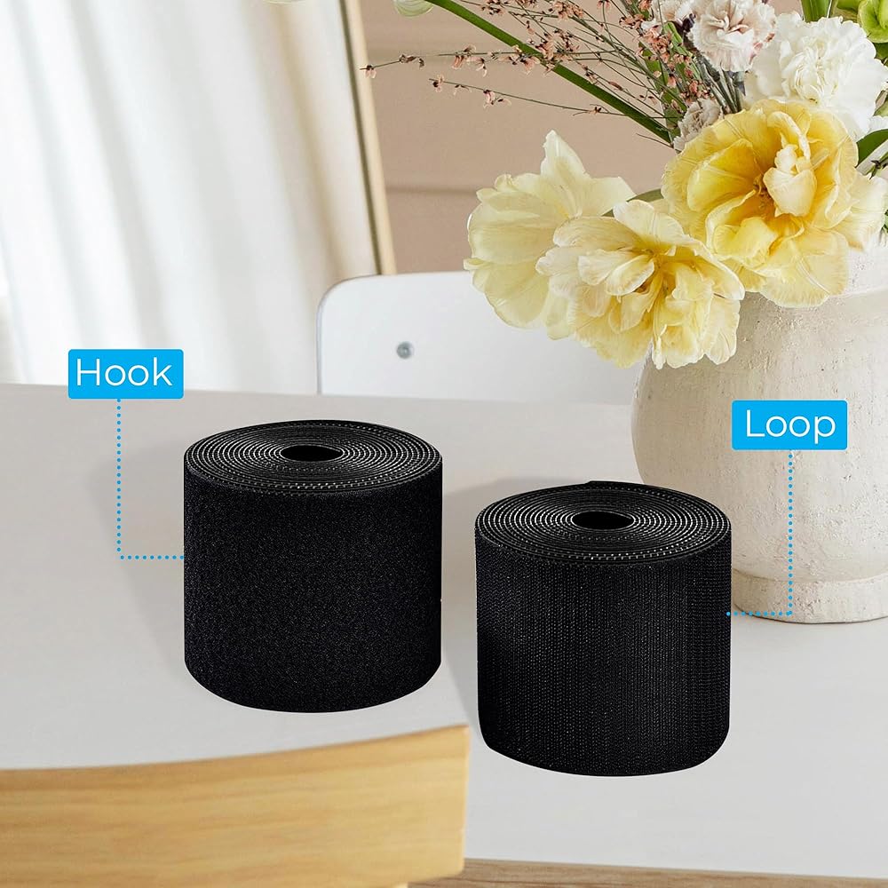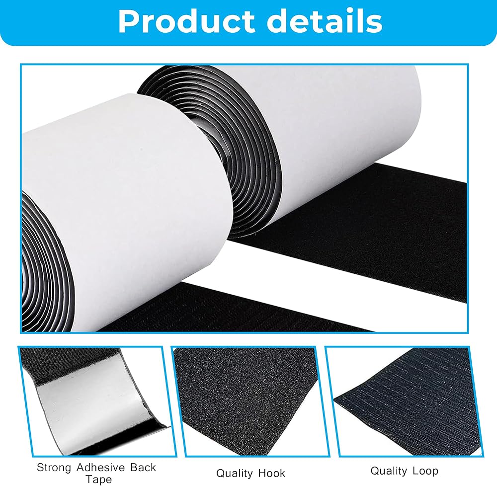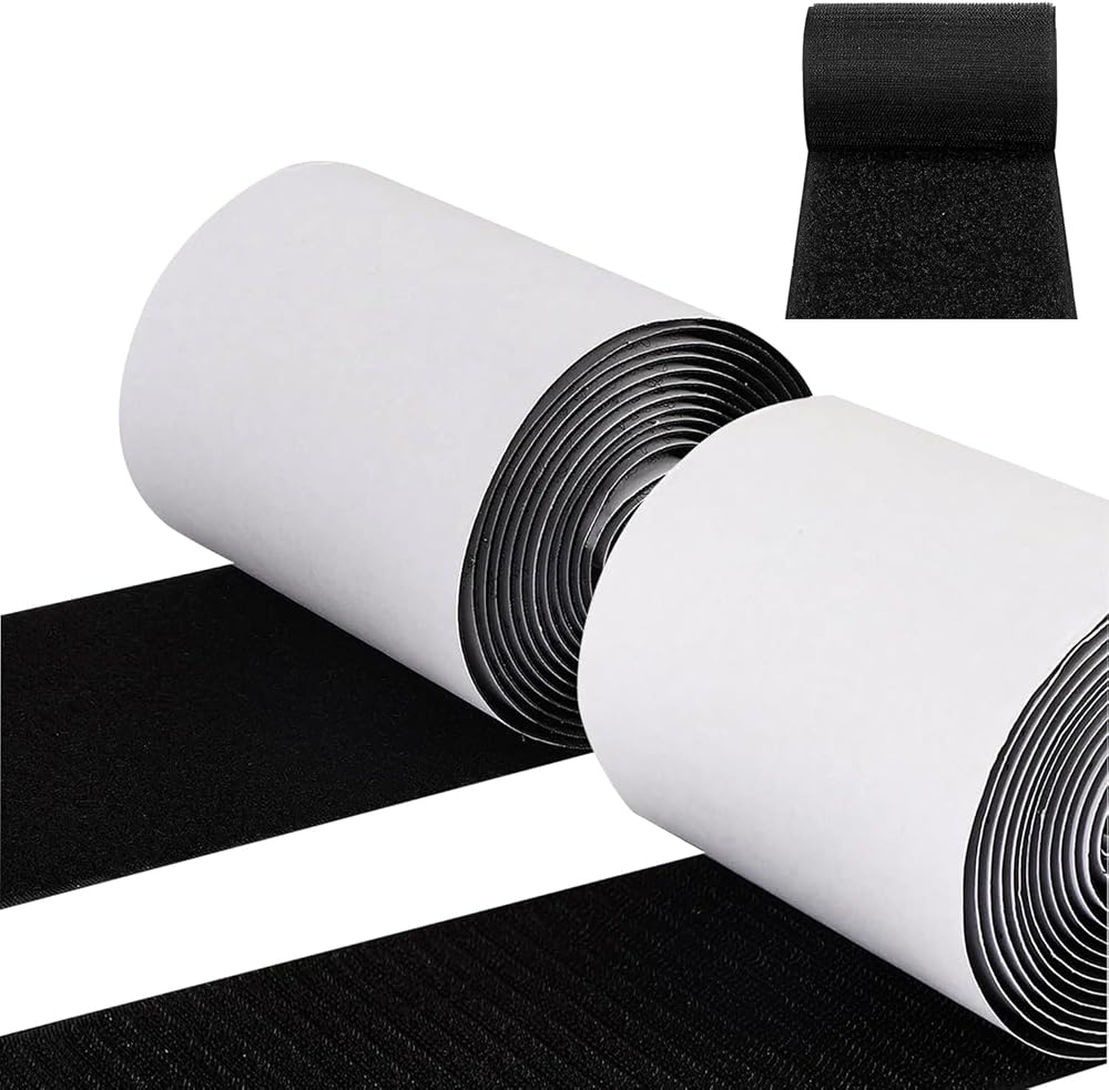 شريط لاصق وحلقة أسود بعرض 2.54 سم، أشرطة/شرائط ذاتية اللصق (ظهر لاصق) تلتصق على كل شيء تقريبًا. (مجموعة كاملة من لفتين) 5 ياردة (15 قدم) أسود