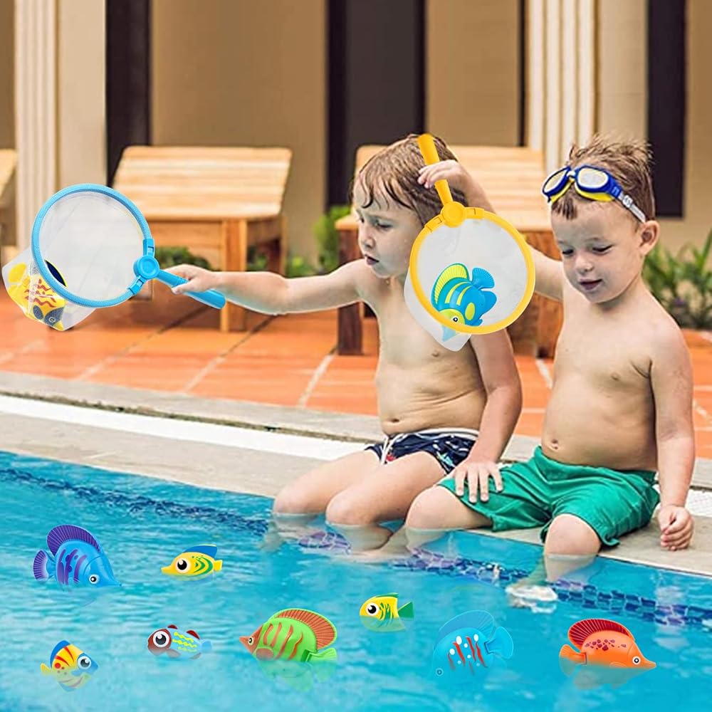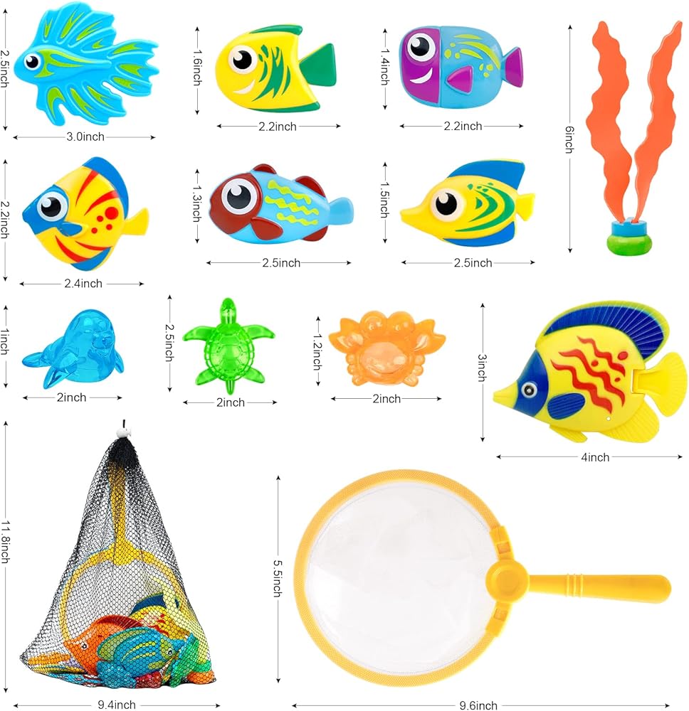 23 قطعة من ألعاب حمام السباحة للأطفال، مجموعة ألعاب السباحة تحت الماء مع أسماك الغوص وشبكة صيد الأسماك، ألعاب غوص لوقت الاستحمام في حمام السباحة