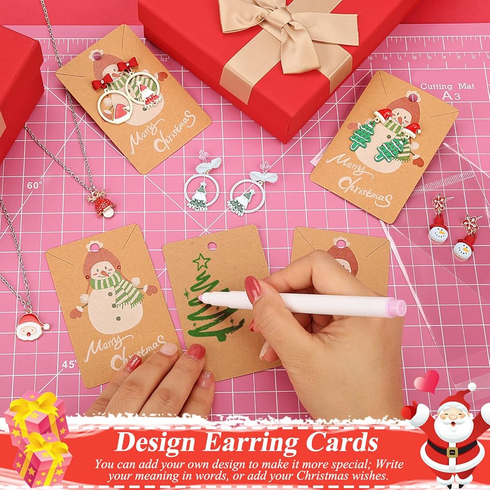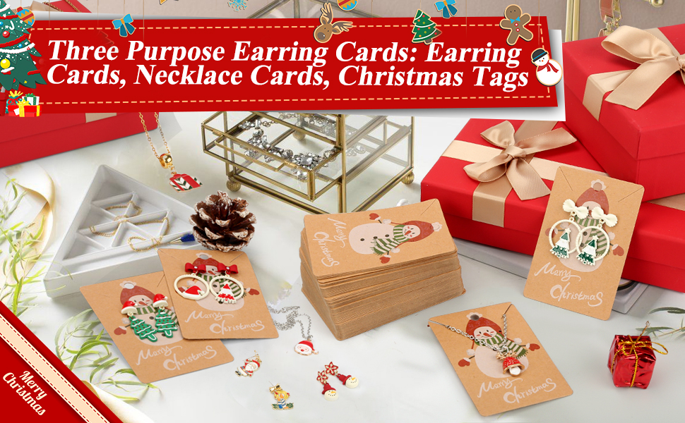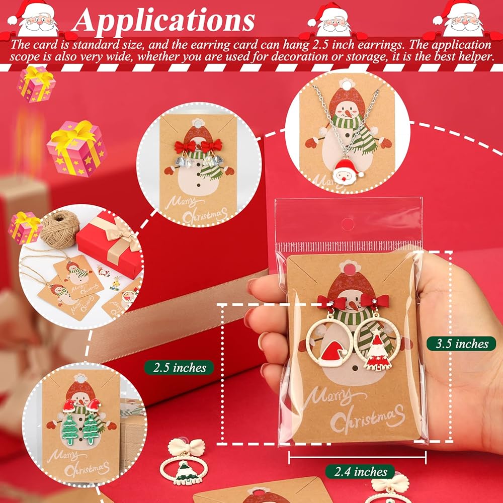 [EARRING CARDS FOR JEWELRY PERSONALIZED] - We added Christmas elements to the earring cards to make your earrings full of Christmas spirit during the Christmas season.The earring necklace packaging card is perforated, the two card slots can be used to display earrings, necklaces and other jewelry, and the top of the earring card has holes for display hanging.