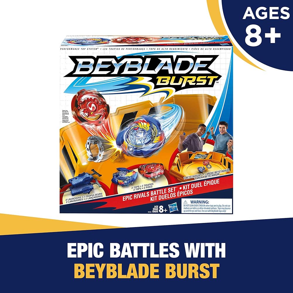بايبلايد مجموعة معركة بيرست ايبيك ريفالز - مجموعة كاملة مع ملعب بايبلايد Burst Beystadium، قمم قتال، قاذفات - لعمر 8 سنوات فما فوق (حصري على أمازون)، اصفر