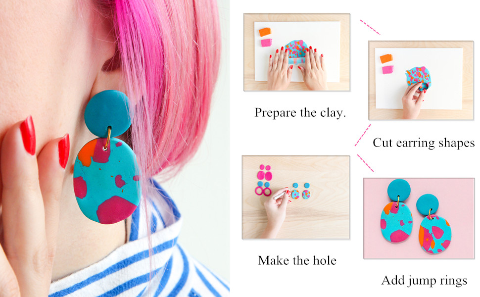 صديقة للمبتدئين: هذه القطع مناسبة لكل من المبتدئين والحرفيين ذوي الخبرة، مما يجعل الصناعة ممتعة لجميع مستويات المهارة. ما عليك سوى الضغط على القالب على طين البوليمر، واستخدام الثقب لإنشاء ثقب، وخبز طين البوليمر، ثم ربطه بحلقات القفز وخطافات الأذن.