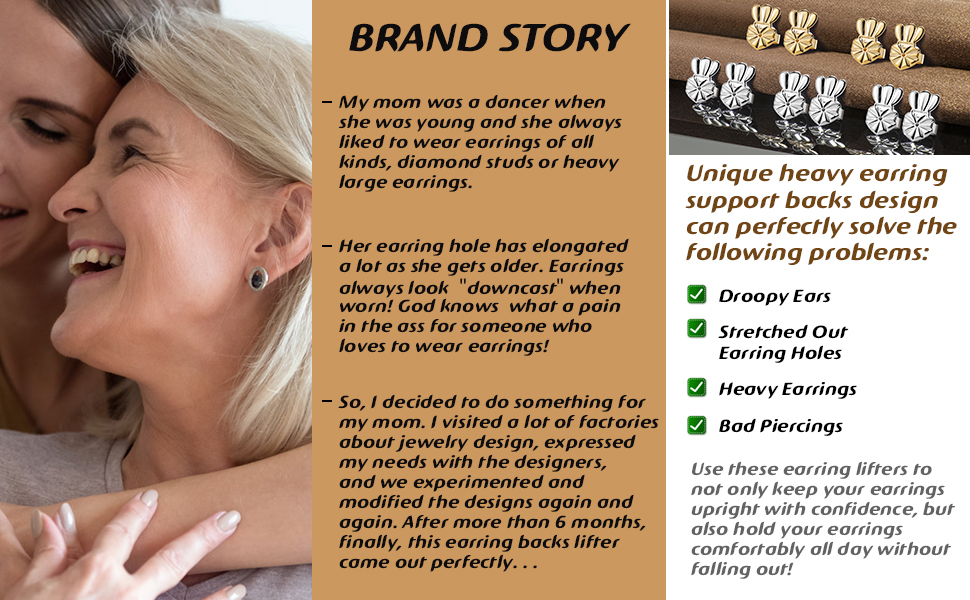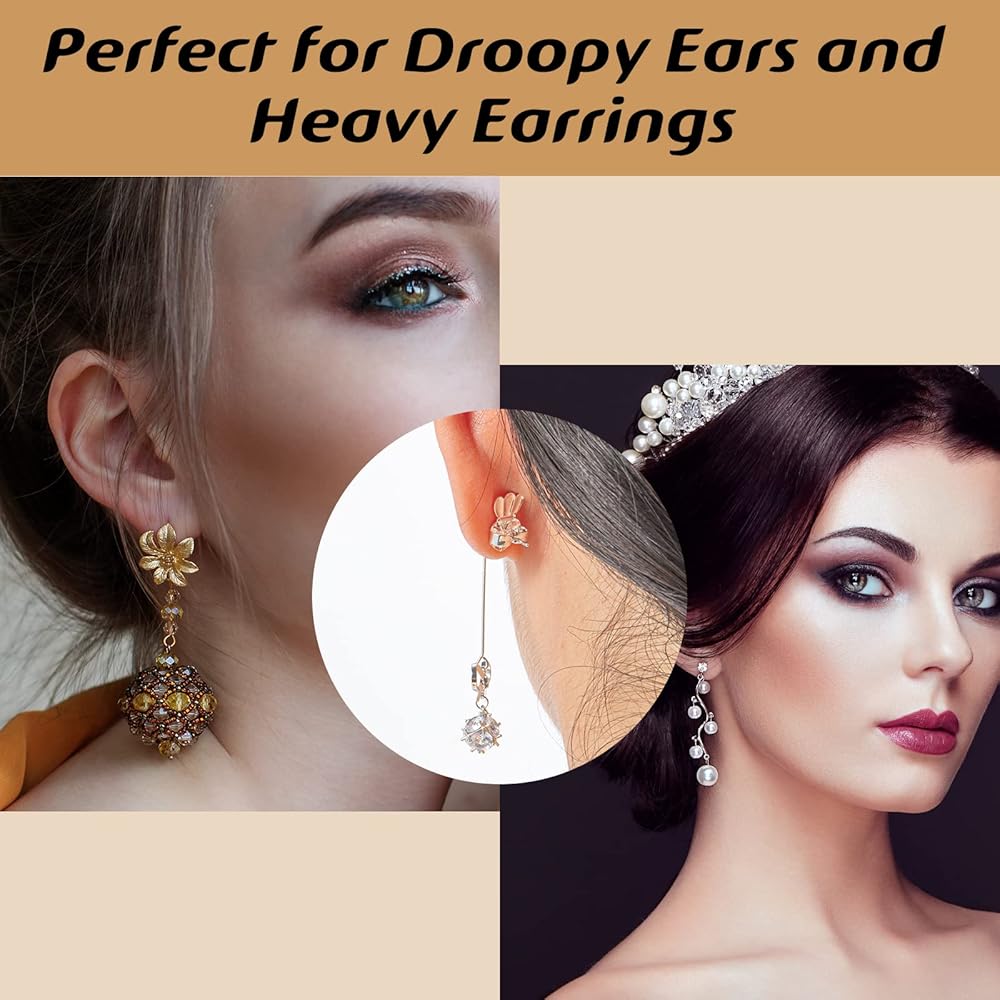 تصميم فريد من نوعه، يمكن أن تتجنب هذه الأقراط الثقيلة تجربة الارتداء السيئة الناجمة عن تدلي الأذنين والأقراط الثقيلة وفتحات الأقراط الممتدة والثقوب السيئة، مما يسمح لأقراطك بأن تستقيم بثقة، لا مزيد من التدلي!