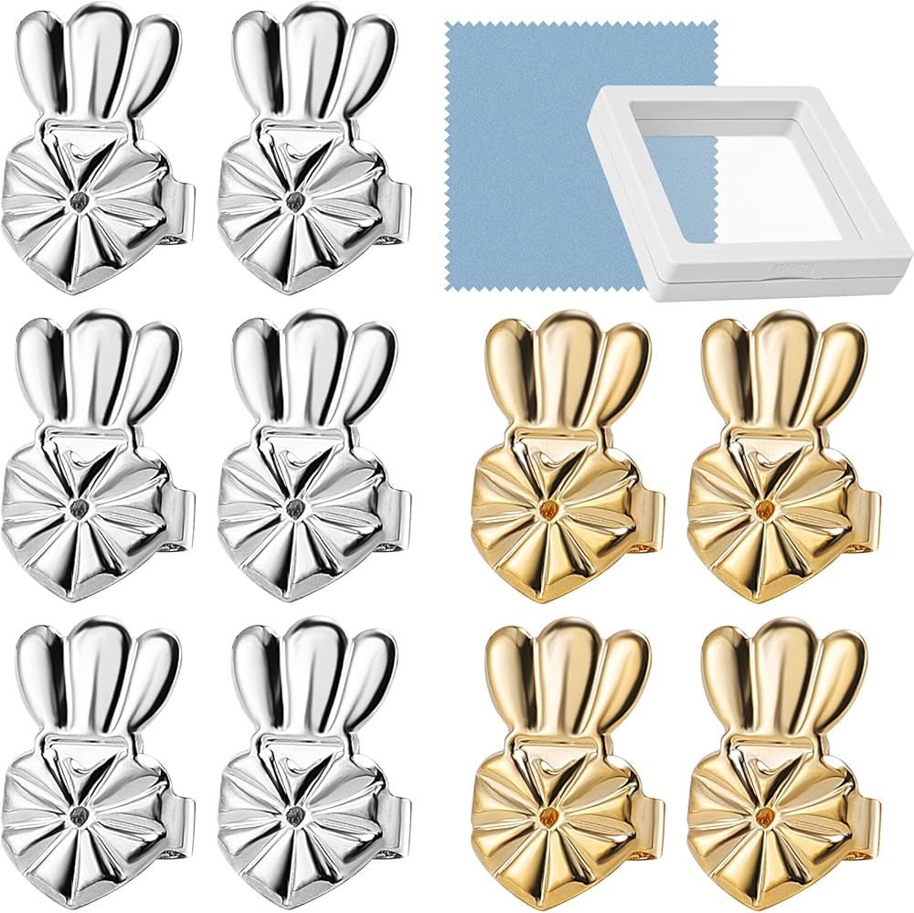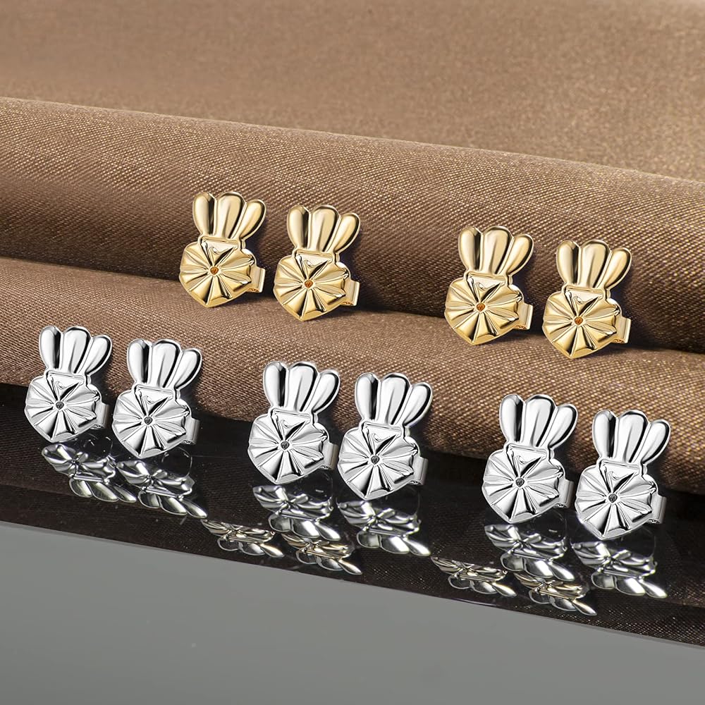 10 قطع/5 أزواج من دعامات الأقراط للأقراط المرصعة والأذنين المتدلية والأقراط الثقيلة، دعامات دعم الأقراط الثقيلة المطورة، دعامات أقراط تيارا لمنع التدلي، رافعات أقراط لا تسبب الحساسية (فضي + ذهبي)