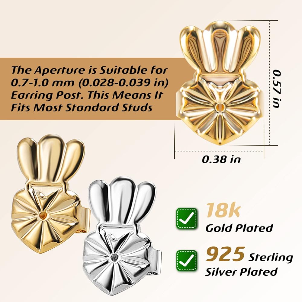 نطاق الاستخدام: فتحة دعم الأقراط مناسبة لعمود الأقراط 0.7-1.0 ملم (0.028-0.039 انش). وهذا يعني أنه يناسب معظم الأزرار القياسية. نصائح: رافعات الأقراط فقط للأقراط ذات العمود الخلفي.
