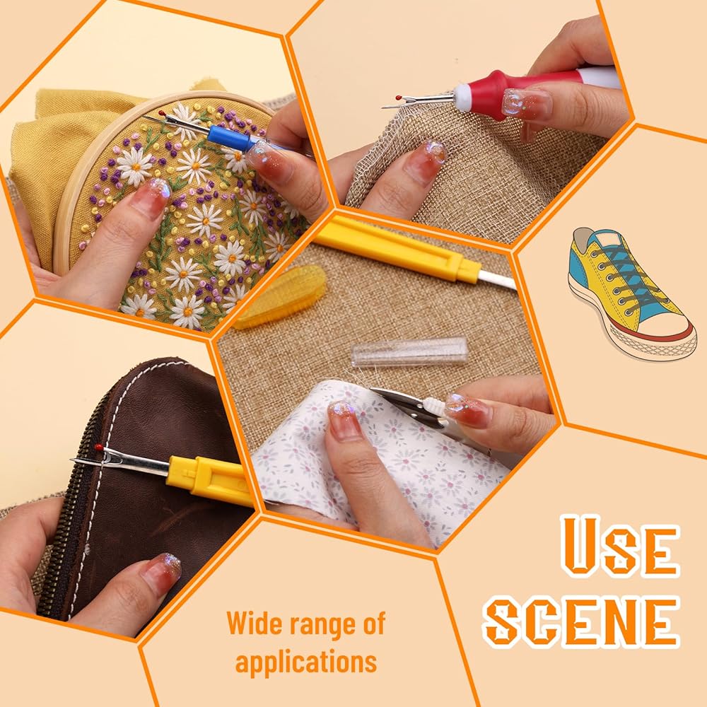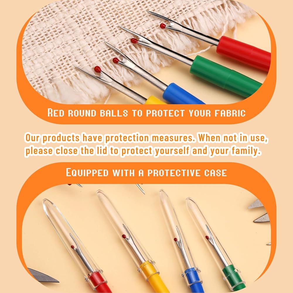 الأدوات الضرورية: الأدوات الضرورية: من ضروريات مجموعة أدوات أي خياط، وتستخدم لتغيير أو إصلاح الغرز دون الإضرار بالقماش. سواء كنت تقوم بالخياطة اليدوية أو التطريز، سيكون مساعدًا جيدًا لك لإزالة الغرز. من أي مجموعة أدوات خياط، تستخدم لتغيير أو إصلاح الغرز دون إتلاف القماش.