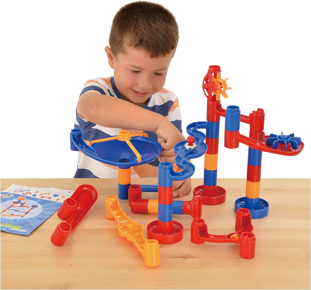 يعد سباق Mega Marble Run المثير من Galt متعة كبيرة. تحتوي مجموعة البناء هذه المكونة من 100 قطعة على الكثير من القطع المثيرة. قم ببناء مسارات رخامية بسيطة، أو هياكل أكثر تعقيدًا باستخدام القطع الملونة المجمعة. تختفي الكرات الرخامية داخل الأعمدة، ثم تدحرج إلى أسفل المزالق، وتدور عبر عجلات المجداف وتقرع الجرس أثناء تحركها. سوف يستمتع الأطفال بإبداع أشكال لا نهاية لها - وقد يرغب الكبار في المشاركة في هذا العمل. تحتوي المجموعة على 8 مزالق، 42 أنبوبًا، 5 قواعد، 3 قمم للمبتدئين، 2 أنابيب شفافة، 3 دوامات، 2 مفاصل دوامية، شلال متذبذب مع أجراس، سلم، دعامة سلم، شلال منحني مع عجلة أفقية، شلال ثنائي الاتجاه مع قطعة متناوبة، دوران 180 درجة، شلال على شكل حرف S، 3 عجلات مجداف، أغلفة العجلات، شلال عجلة عمودي و20 قطعة رخام. يساعد تشغيل الرخام في تنمية الطفل بعدة طرق. إن بناء مسار رخامي يشجع الأطفال على استخدام خيالهم ومهارات حل المشكلات. لبناء المسار الرخامي، يستخدمون المهارات الحركية الدقيقة والتفكير المنطقي والمتسلسل. للأطفال من سن 4 إلى 8 سنوات. جميع منتجات جالت تلبي معايير السلامة الأمريكية والكندية والبريطانية والأوروبية. تم تصميم ألعاب جالت لتلبية كل مرحلة من مراحل نمو الطفل وتشجيع التعلم من خلال اللعب. بدأ جالت عمله كبائع للكتب المدرسية في عام 1836 وهو الآن رائد في مجال المنتجات التنموية والإبداعية عالية الجودة للأطفال.