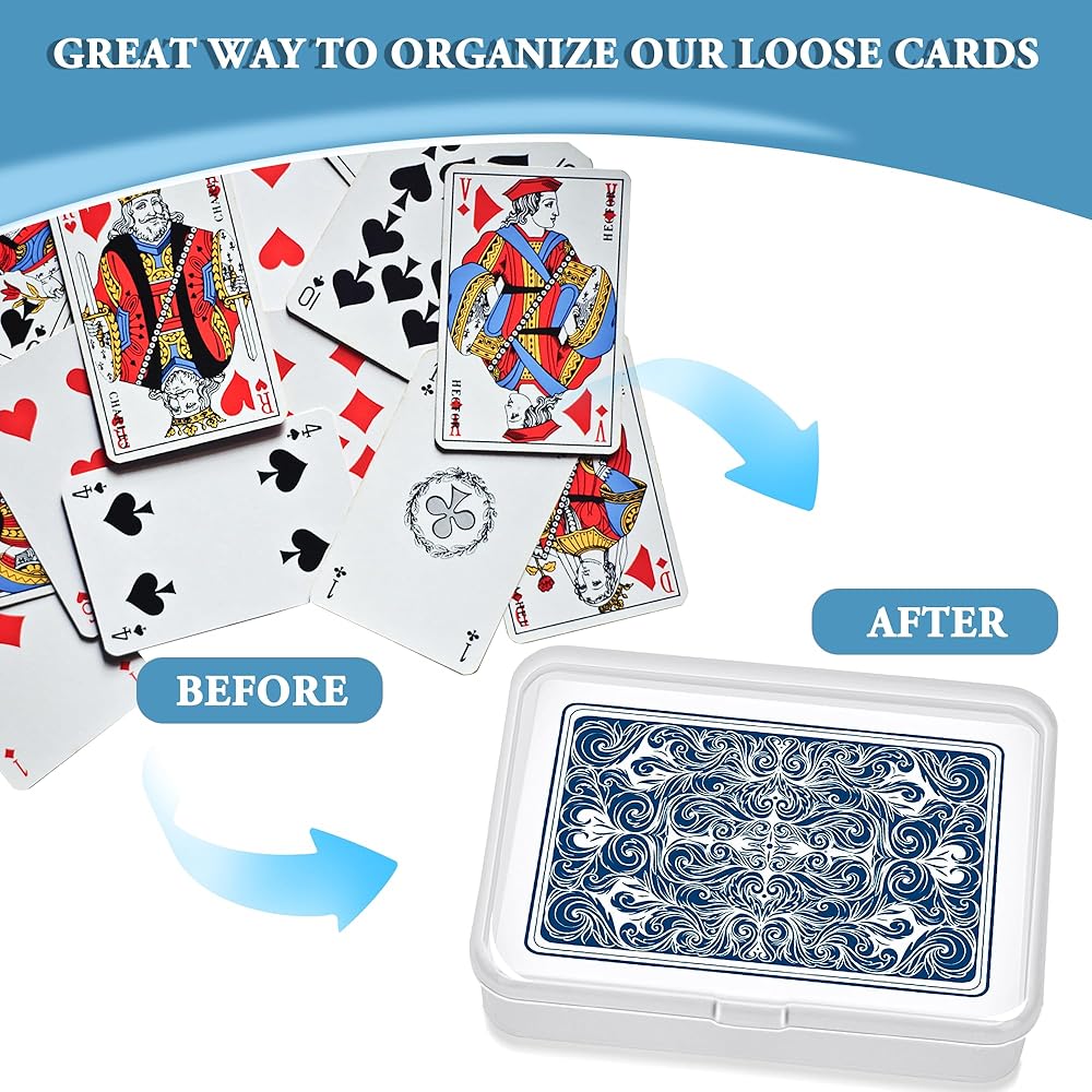 【كمية كافية】سوف تحصل على 6 عبوات من صناديق بطاقات اللعب الشفافة، كافية للاستخدام والاستبدال في الحياة اليومية، مما يساعدك على تخزين بطاقات البوكر بشكل أفضل بعد لعب لعبة الورق مع الأصدقاء والعائلات؛ ملحوظة: العبوة لا تحتوي على أوراق اللعب.
