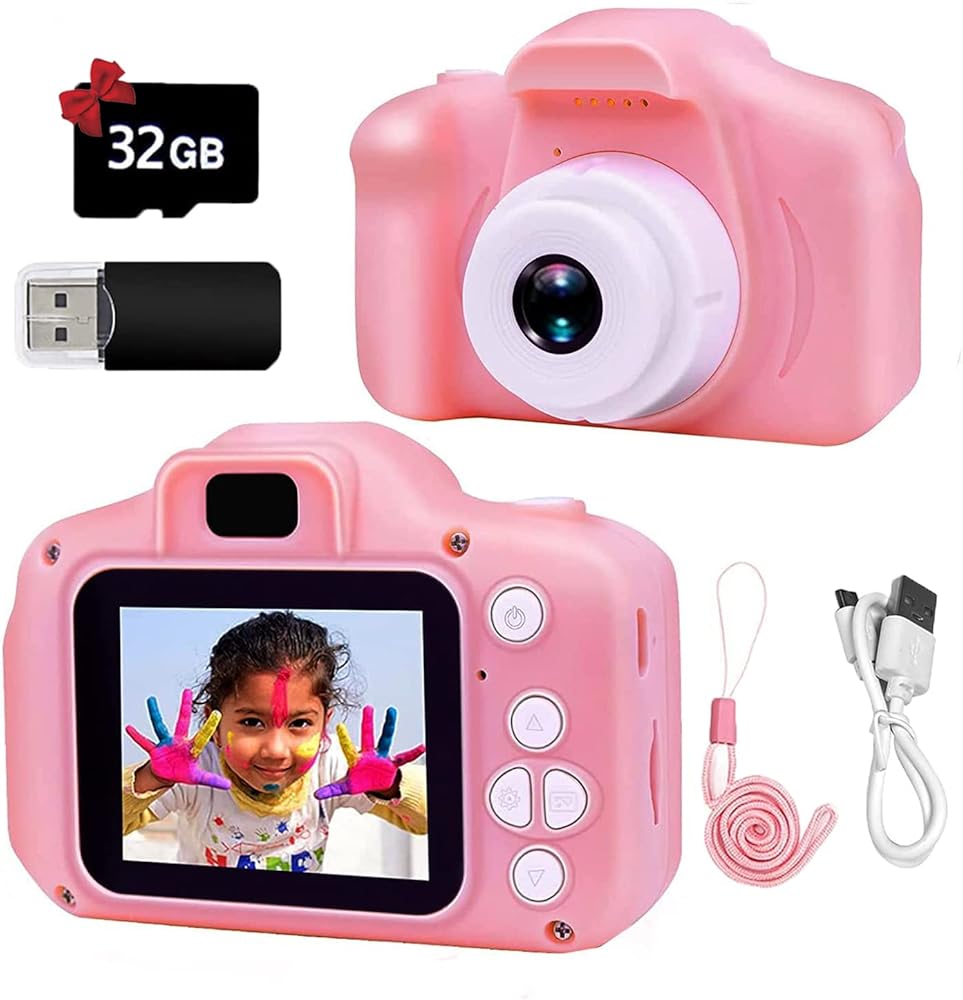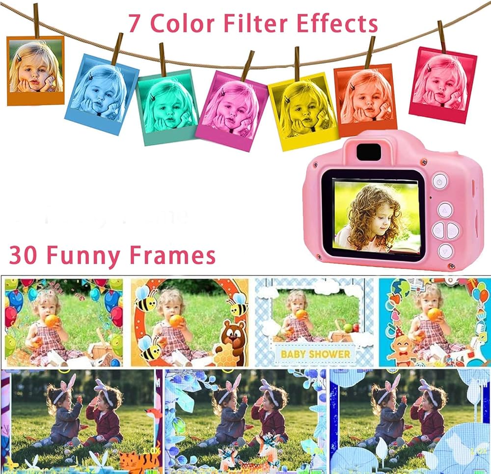 كاميرا بلوتي للأطفال مع بطاقة TF بسعة 32 جيجابايت، كاميرا فيديو رقمية مطورة للأولاد والبنات بعمر 3 سنوات فما فوق، كاميرا رقمية للأطفال، تأثيرات تصوير متعددة، هدايا مثالية لأعياد الميلاد والكريسماس ورأس السنة الجديدة