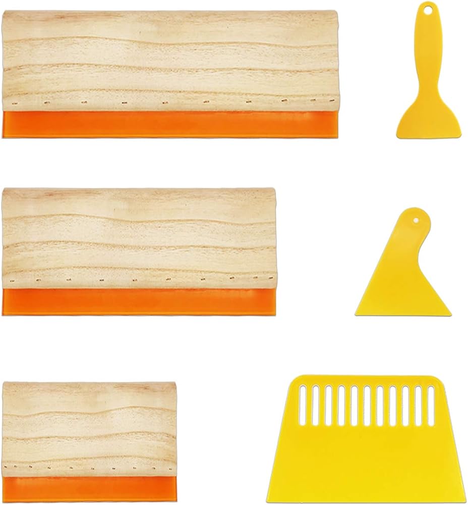 ممسحة ورون 6 قطع 6 مقاسات لطباعة الشاشة، 3 مقاسات 75 مكشطة حبر خشبية (13.7، 9.4، 5.9 بوصة)، 3 مقاسات مكشطة حبر بلاستيكية (6.8، 3.3، 2.3 بوصة) لطباعة الشاشة