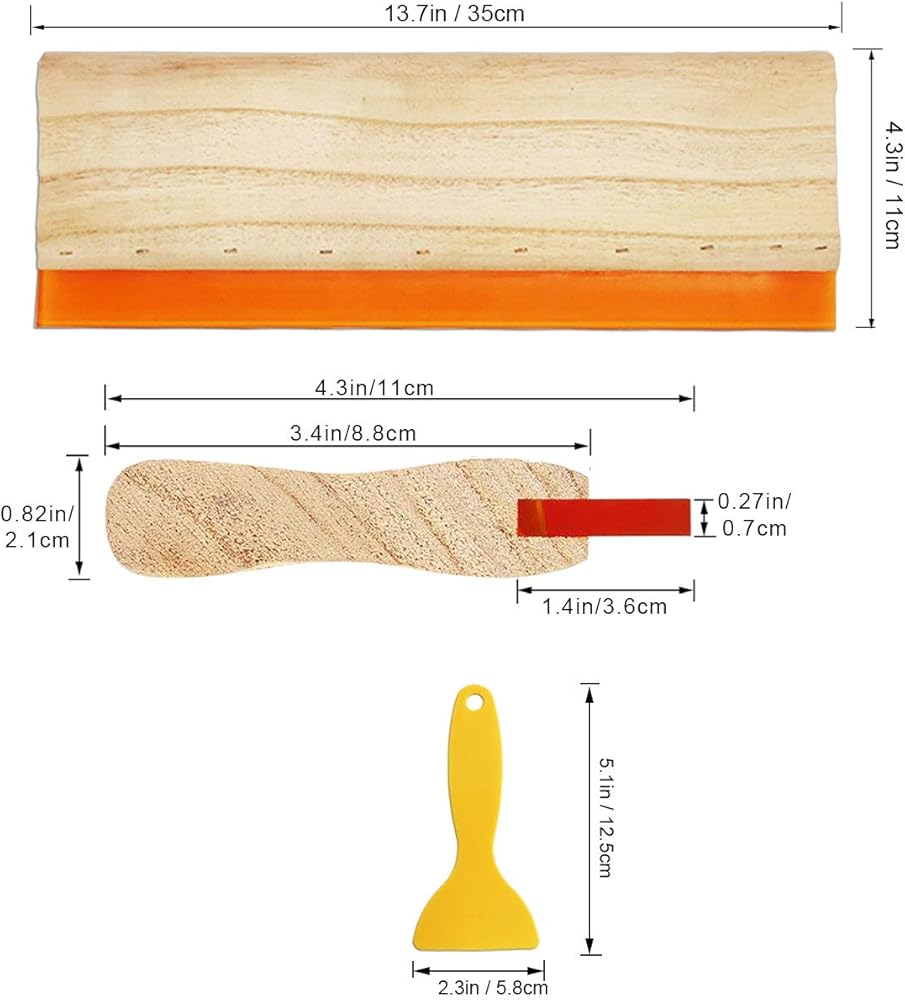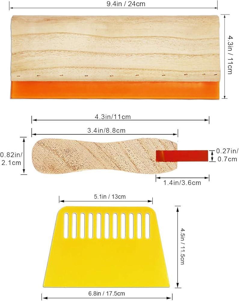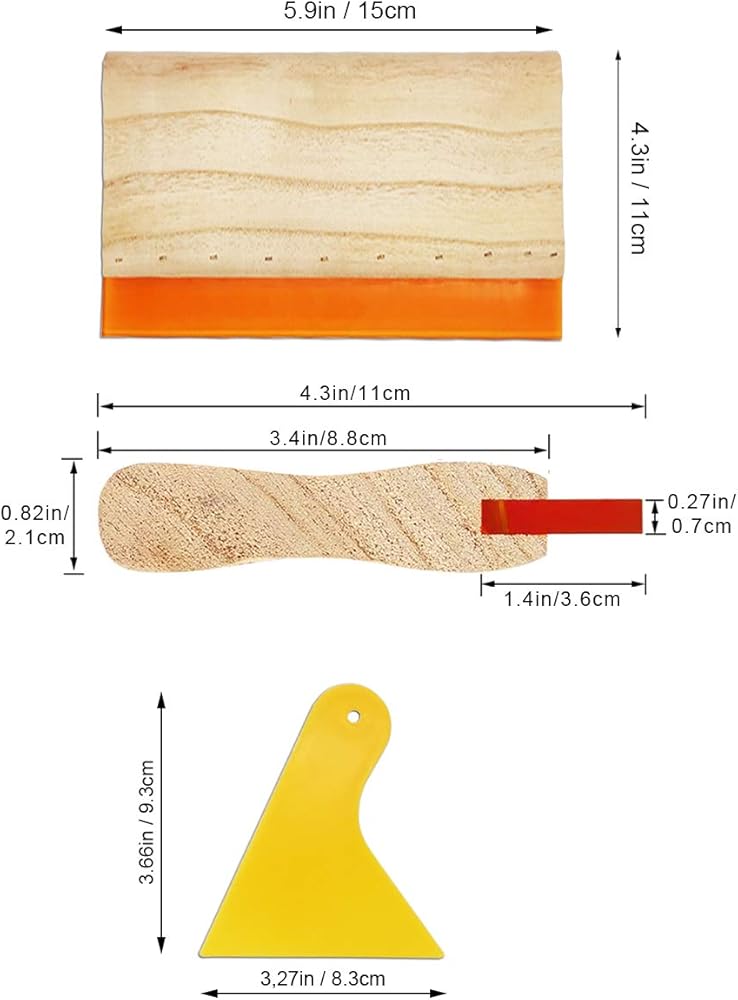 المقاس (تقريبًا): تحتوي المكشطة الخشبية على 3 مقاسات، 13.7 × 11 انش، 9.4 × 4.3 انش، 5.9 × 4.3 انش. تحتوي المكشطة البلاستيكية على 3 مقاسات، 6.8 × 4.5 انش، 3.7 × 3.3 انش، 5.1 × 2.3 انش
