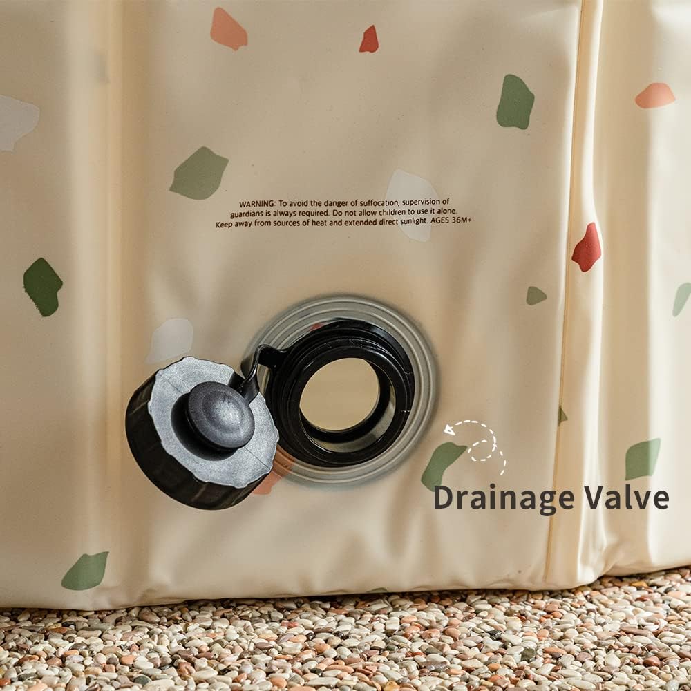 جودة عالية ومتينة: مادة بلاستيك PVC شديدة الصلابة وغير سامة، وألواح البولي بروبيلين السميكة توفر مكانًا قويًا للسباحة واللعب للأطفال. التصميم السفلي المنقوش غير القابل للانزلاق يجعل أطفالك أكثر أمانًا أثناء اللعب.