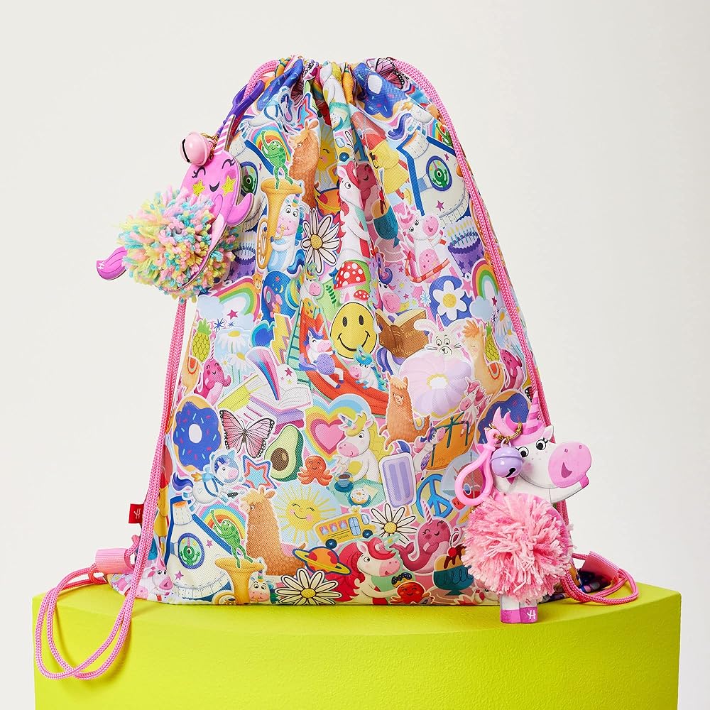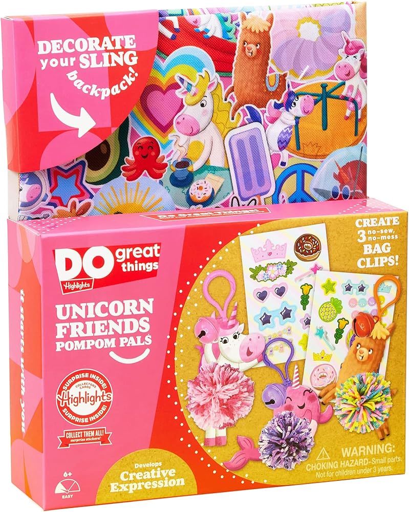مجموعة سلاسل مفاتيح بوم بوم بوم للاطفال بتصميم يونيكورن من هايلايتز، ابتكر وتخصيص مشابك اكياس بوم بال ملونة بدون خياطة، تتضمن شنطة ظهر قابلة لاعادة الاستخدام للتخزين بدون فوضى، للاعمار من 6 سنوات فما