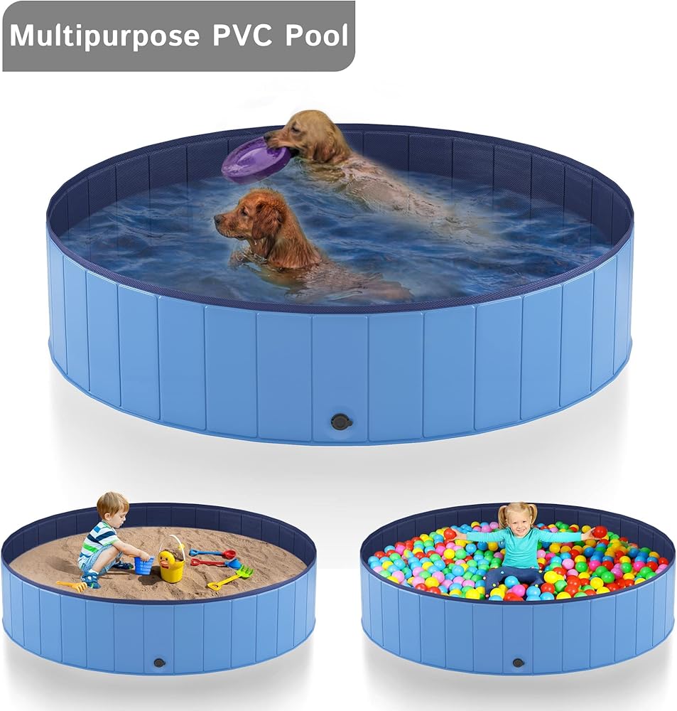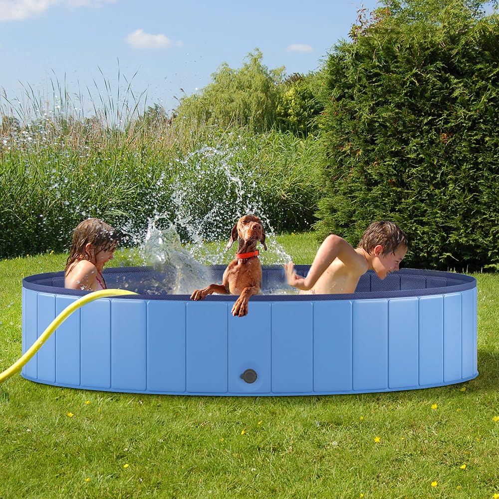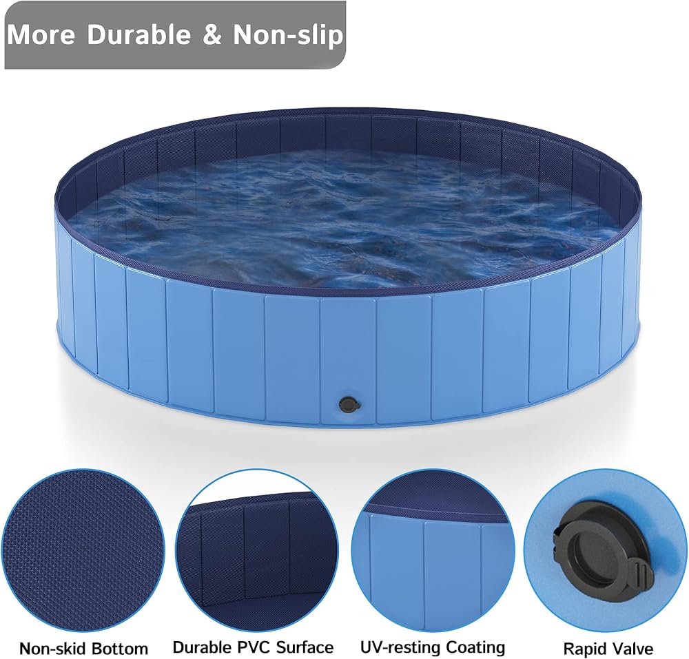حوض سباحة للكلاب قابل للطي من Heeyoo، حمام سباحة محمول من البلاستيك الصلب للكلاب، حوض استحمام خارجي قابل للطي للحيوانات الأليفة والكلاب والقطط، 79 × 12 بوصة