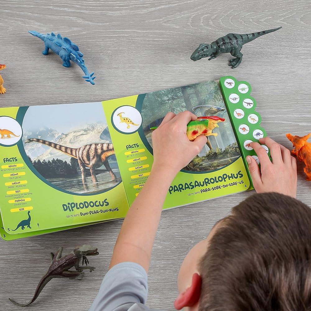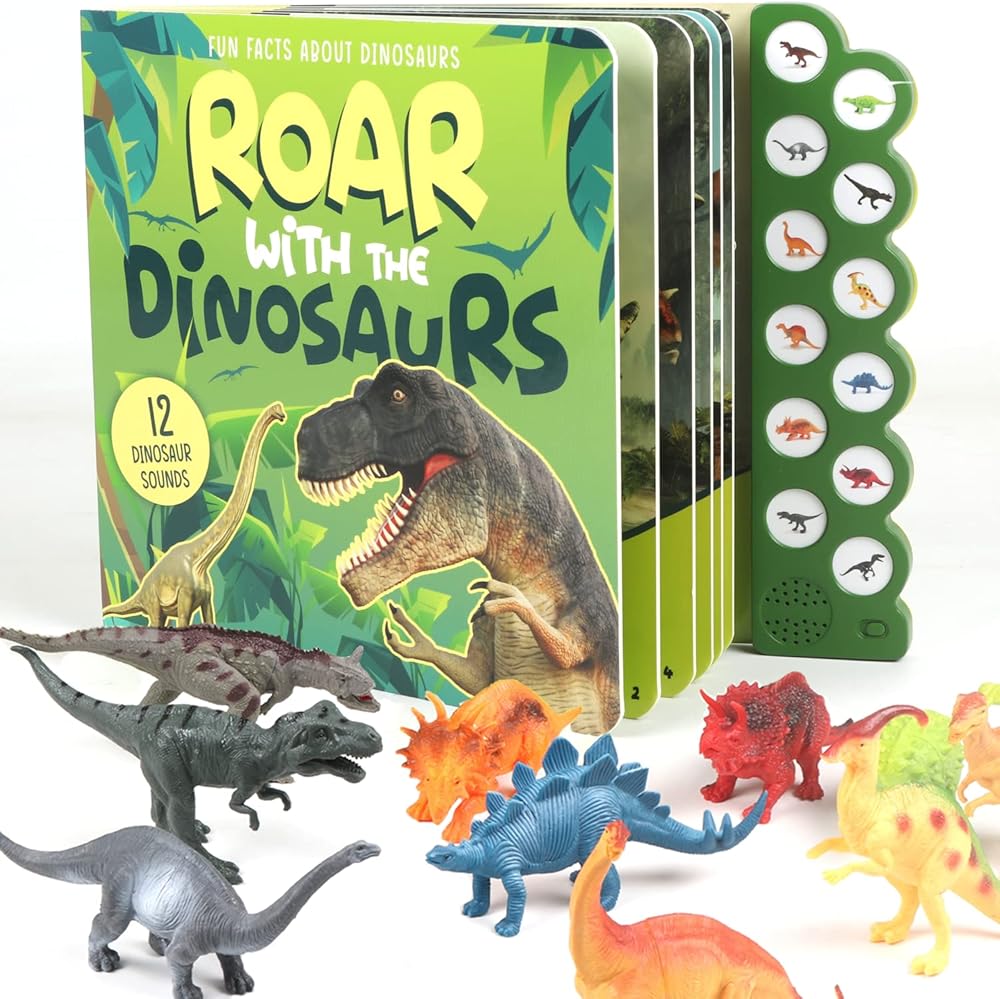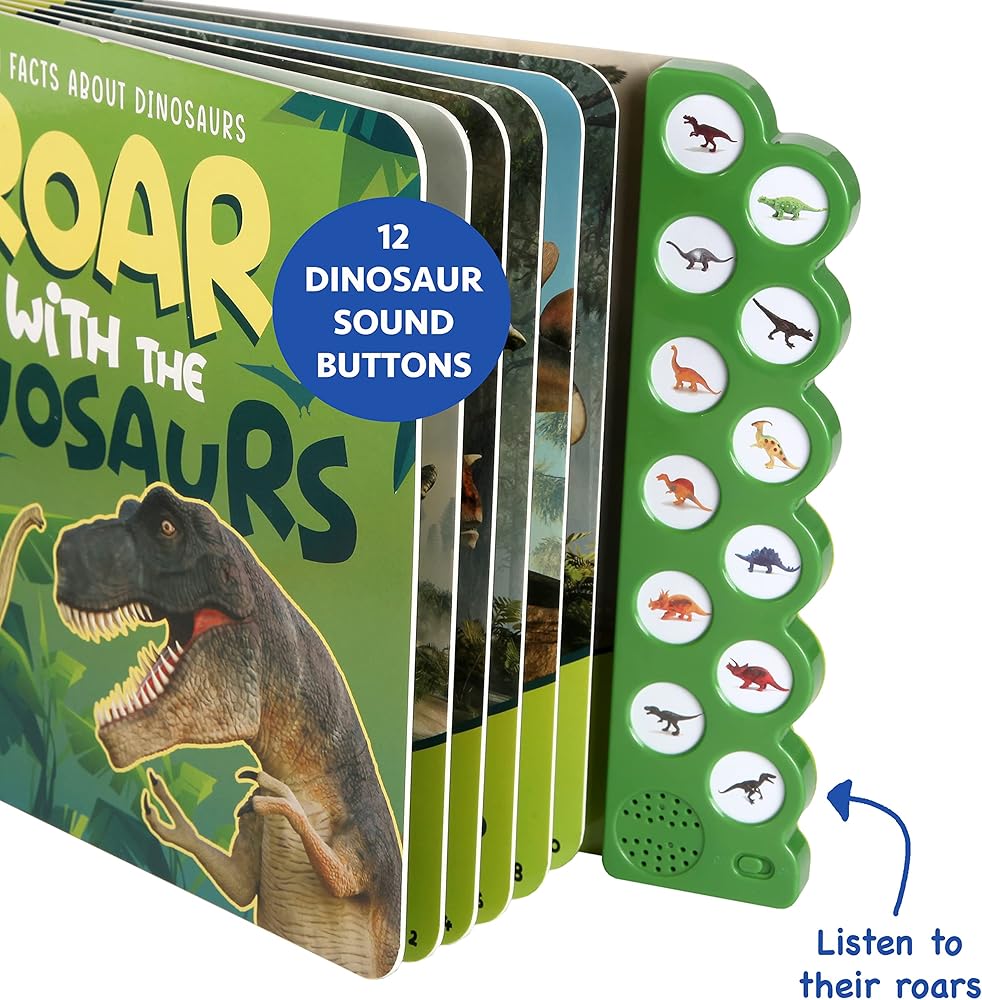 كتاب الديناصورات - اكتشف وتعلم أصوات الزئير لكل من الديناصورات الـ 12 الموجودة في كتاب الديناصورات الصوتي هذا بالضغط على زر الصوت المقابل.