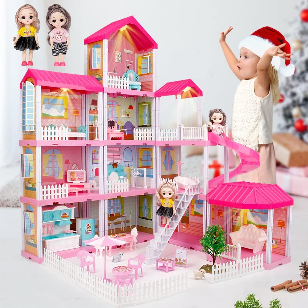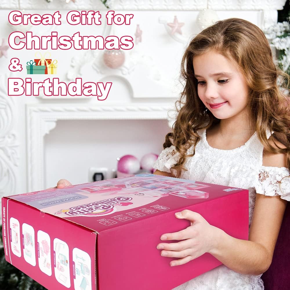 أفضل هدية للأولاد والبنات - بيت الدمى مصنوع من مادة بلاستيك أكريلونتريل بوتادين ستايرين عالية الجودة وغير سامة، وهي ناعمة وخالية من الاختباء. لذلك لن يؤذي بشرة الأطفال. مشاهد مصغرة محاكاة غنية تتيح للأطفال اللعب بمتعة الخيال. يمكن استخدام منزل الدمية النهائي كمجموعة رائعة أو ديكور منزلي. هذا المنزل الحالم معبأ في صندوق هدايا ملون. إنها أفضل هدية للفتيات الصغيرات من سن 3 إلى 12 عامًا لعيد الميلاد وأعياد الميلاد.