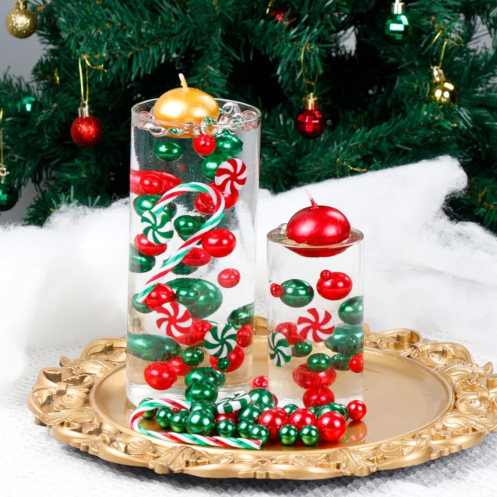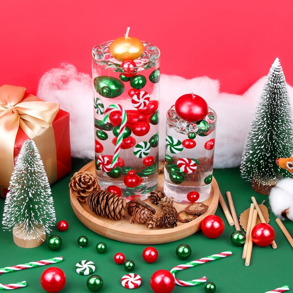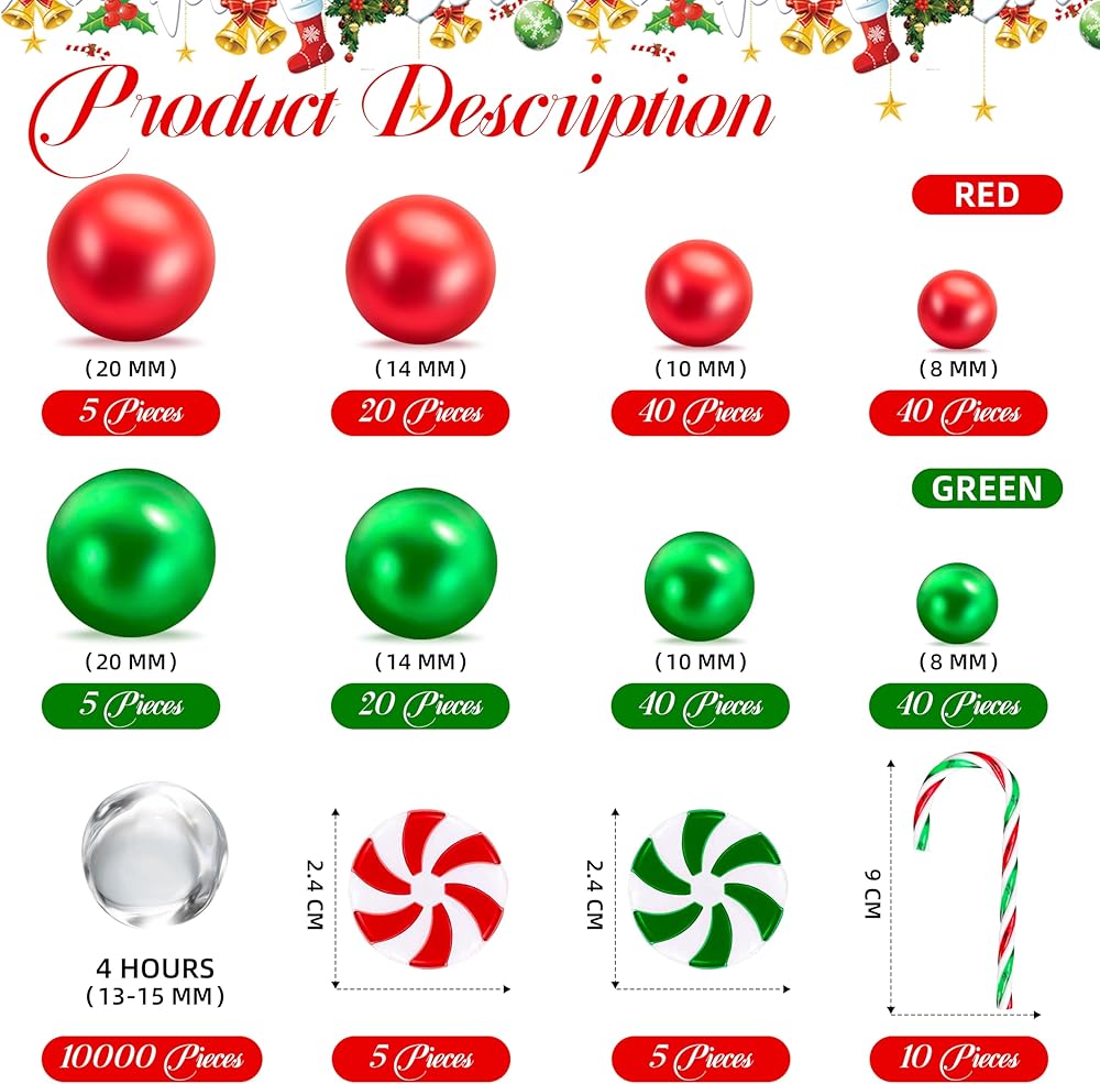 BYMORE 10000+ مجموعة حشو المزهرية العائمة DIY، بما في ذلك 10000 قطعة من خرز جل الماء، 210 قطعة من اللؤلؤ الأحمر والأخضر، 20 قطعة من قصب الحلوى لتزيين طاولة المنزل