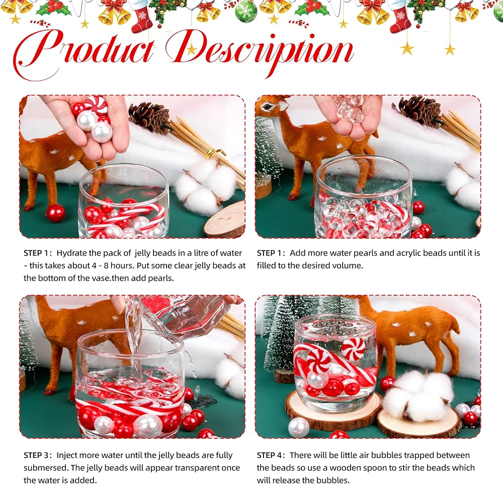• حزمة قيمة: تتضمن 10000 قطعة من الخرز المائي، و210 لؤلؤ أحمر وأخضر بأحجام مختلفة، و10 حلوى و10 عصي لملء المزهرية من اختيارك! اصنع قطعة مركزية جميلة لطاولة عطلتك مع مجموعة حشو المزهرية هذه.