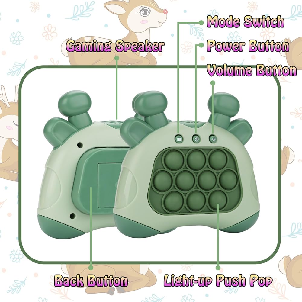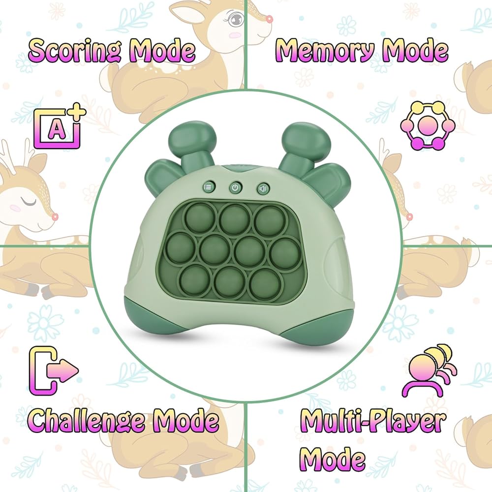 لعبة تفاعلية متعددة الأوضاع | توفر وحدة الألعاب المحمولة لدينا، Speed Push Pop، أربعة أوضاع لعب ممتعة - وضع المسرح، ووضع الذاكرة، ووضع التسجيل، ووضع اللاعبين المتعددين. يوفر كل وضع طريقة فريدة للعب والاستمتاع باللعبة، كما أن تصميم الشكل الفريد لوحدة التحكم يجعلها لعبة ألغاز ممتازة وأداة لتخفيف الضغط لكل من الأطفال والكبار.