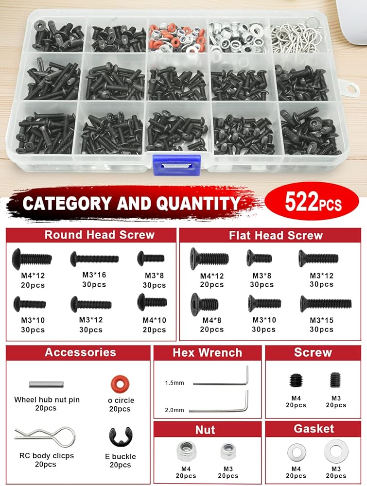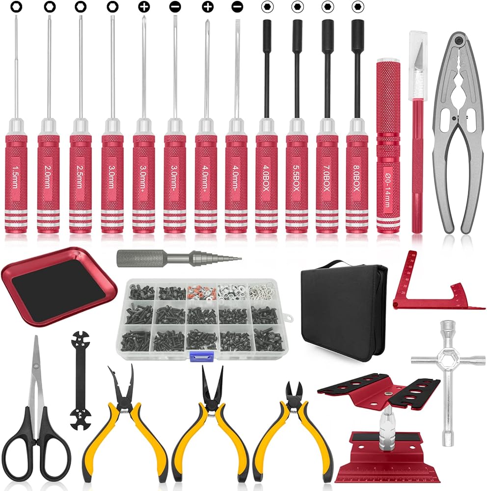 مجموعة أدوات OGRC - مجموعة مفكات (مسطحة، فيليبس، سداسية) حامل عمل RC، مجموعة براغي 522 قطعة، مجموعة كماشة، مخرطة للجسم، مفتاح ربط، صينية، أدوات إصلاح لطائرة هليكوبتر RC Car Boat Quadcopter - 26 قطعة