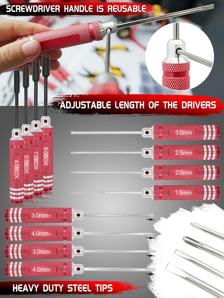 【استخدام على نطاق واسع】تتضمن مجموعة أدوات OGUNKE RC تقريبًا كل أداة مطلوبة للحفاظ على سيارات RC الخاصة بك، وقارب RC، والروبوتات، وطائرات بدون طيار، وطائرات الهليكوبتر، والطائرات، والطائرات الرباعية، والطابعة ثلاثية الأبعاد، وما إلى ذلك. الأبعاد عند المقبض لسهولة التعرف والاستخدام. أدوات متنوعة حسب اختيارك، تركيب خالٍ من المتاعب.