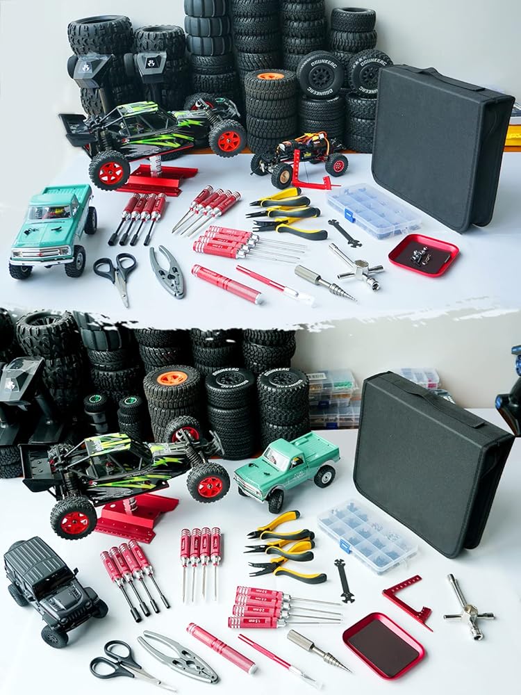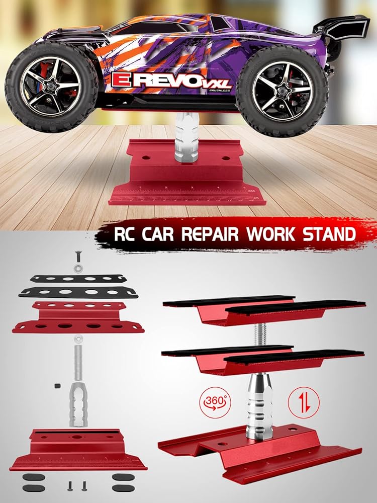 【أداة مزيج مثالية】 حامل عمل RC متوافق مع: سيارات RC بمقياس 1/8 إلى 1/18، والشاحنات، والعربات، مثل Traxxas/Arrma/Redcat/Axial/Tamiya وما إلى ذلك. يمكن تدويرها 360 درجة، وضبط الارتفاع في حدود 3.54 بوصة - 5.11 بوصة، ودوران بزاوية كاملة، وفتحات مدمجة لإعادة بناء الصدمات. مجهزة بمجموعة براغي RC مكونة من 522 قطعة، صيانة وإصلاح روتينية مريحة لسيارتك.