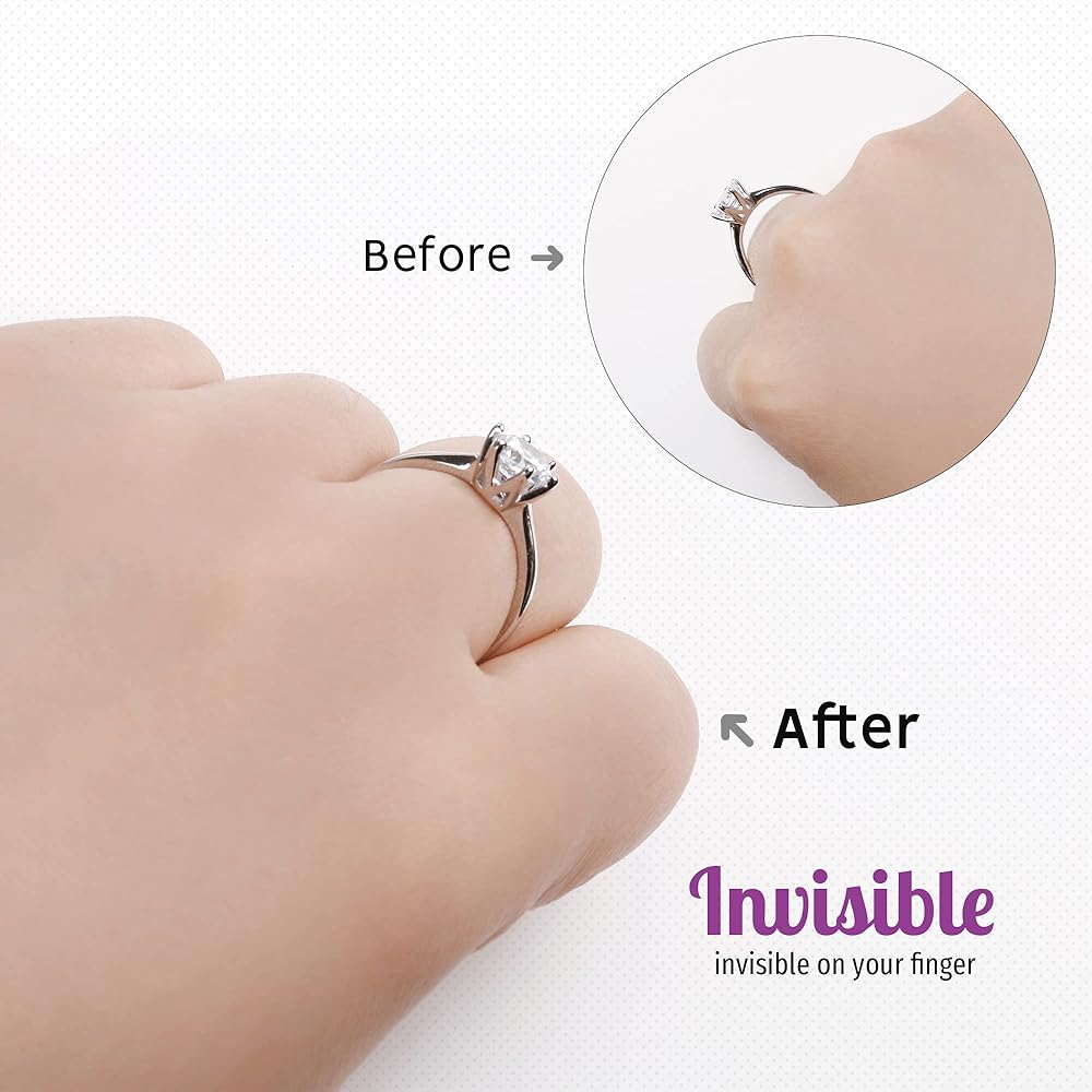 ⭐غير مرئي فعليًا: التصميم الفريد لمقاس الخاتم يجعله غير مرئي تقريبًا عند وضعه على الحلقات، ويبقى حلزون السيليكون الشفاف جيدًا على الحلقات ولا يشعر بأي شيء على إصبعك.