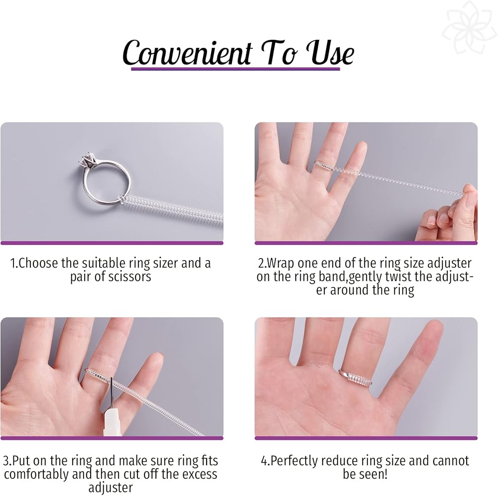 ⭐حل سريع للحلقة الفضفاضة: يوفر التصميم الحلزوني ملاءمة طويلة الأمد ومريحة لمعظم الخواتم، وهي طريقة رائعة تجعل خاتمك ملائمًا دون الحاجة إلى إعادة حجمه. إنه ليس فقط مشدودًا بسيطًا للحلقة، ولكنه أيضًا سيحمي حلقاتك من التعرض للخدش أثناء العمل أو القيام بالأعمال المنزلية.