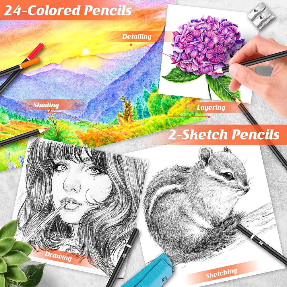 🎨【مجموعات فنية آمنة】مصنوعة من مواد عالية الجودة، مجموعة الرسم الفني هذه آمنة ولا تسبب ضررًا للأطفال والكبار. جميع أقلام التلوين وأقلام الرصاص وأقلام التحديد والباستيل الموجودة في هذه المجموعة الفنية آمنة وغير سامة، وتتوافق مع ASTM D4236. مجموعات فنية آمنة للاستخدام لأي مستوى من الفنانين. مجموعة فنية مثالية للأطفال، مجموعة فنية، مجموعات لوازم فنية.