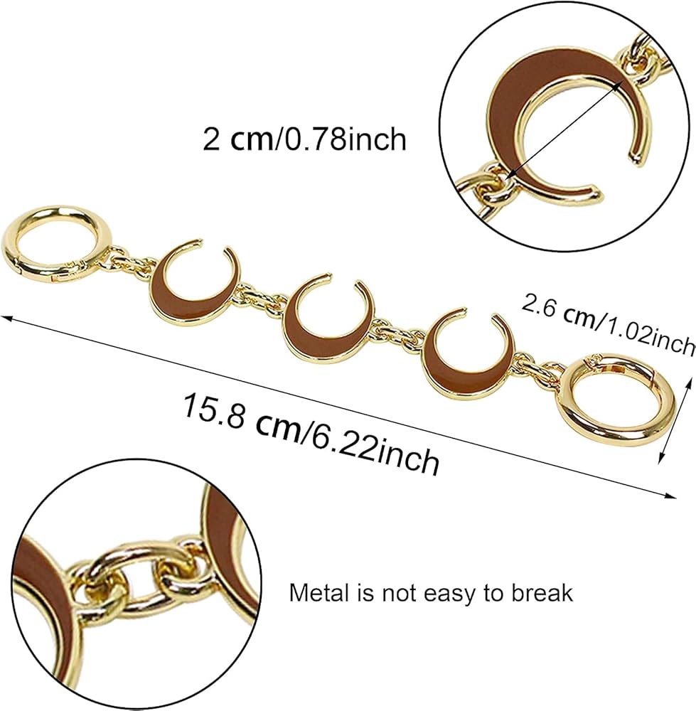 [سهلة الاستخدام] طرفي سلسلة التمديد على شكل قلب هما أبازيم زنبركية، وهي سهلة التركيب والتفكيك، وهي أكثر ملاءمة لتغيير طول سلسلة الحقيبة وتنشيط حقيبتك في نفس الوقت.