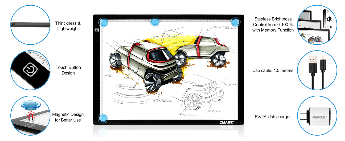 تطبيق واسع - مصباح LED ممتاز مثالي للاستنسل، والرسوم المتحركة ثنائية الأبعاد، والخط، والنقش، وسجل القصاصات، ونقل الوشم، والرسم والرسم، ومشاريع الخياطة، والزجاج الملون، واللحف، والرسم الماسي، والتزيين، وعرض الأشعة السينية وما إلى ذلك.