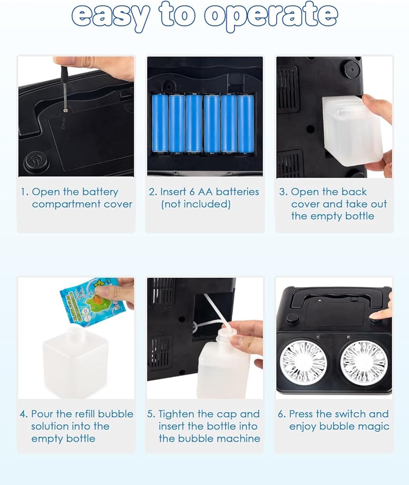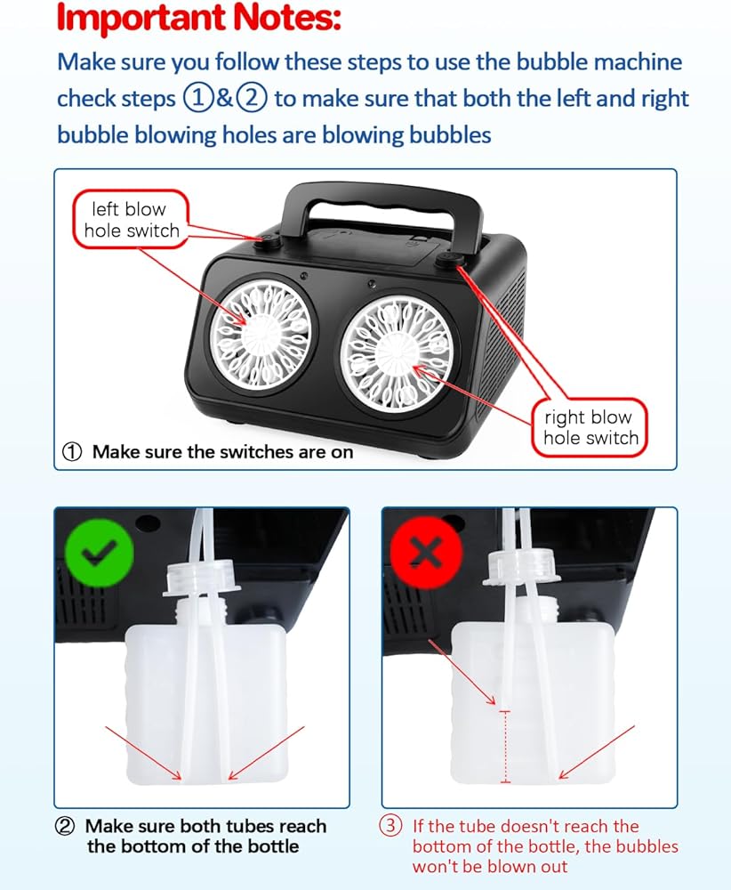 【ضمان الرضا】: يأتي محلول إعادة ملء الفقاعات الخاص بنا بكمية كبيرة، مما يضمن حصولك على كمية وافرة من الفقاعات للحفاظ على المتعة لفترة طويلة. نحن ندرك أنه في بعض الأحيان قد لا تلبي المنتجات توقعاتك، ولكننا نقدم ضمان الرضا بنسبة 100%. إذا لم تكن راضيًا عن المنتجات لأي سبب من الأسباب، فيرجى الاتصال بنا على الفور وسيتوفر فريق خدمة العملاء لدينا على مدار الساعة طوال أيام الأسبوع لمساعدتك، مما يضمن رضاك عن كل عملية شراء!