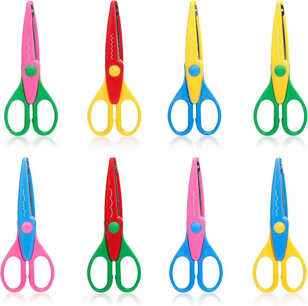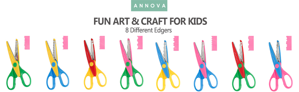 أنوفا مقص فني وحرف في حقيبة تخزين/جيب، والذي يتضمن 8 أزواج من المقصات الورقية مع طرف أمان ومقبض سهل الإمساك في حقيبة تخزين، طول المقص: 15.5 سم / 6.1 انش. 8 ألوان وأنماط قطع مختلفة، بما في ذلك الحافة المسننة والحافة المموجة والمزيد. مصنوعة من البلاستيك الصديق للبيئة وخليط معدني من الألومنيوم. مثالية لإنشاء أنماط جميلة على البطاقات وورق سجل القصاصات وورق الهدايا والمزيد. كما أنها ممتعة وسهلة وآمنة للأطفال للاستخدام. يرجى إبقاء هذا المنتج بعيدًا عن متناول الأطفال دون سن أربع سنوات.