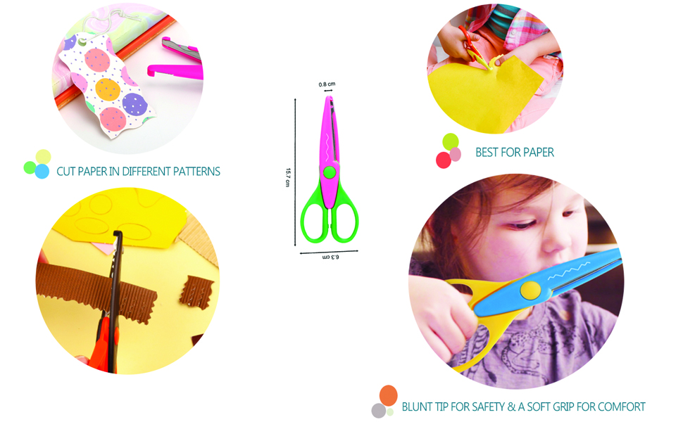• 8 ألوان وأنماط قطع مختلفة، بما في ذلك الحافة المسننة والحافة المموجة والمزيد.