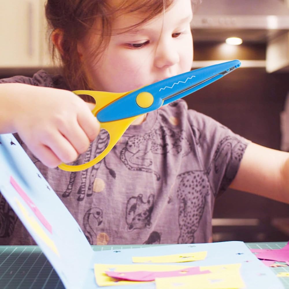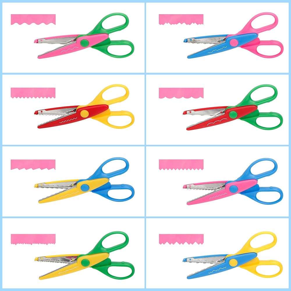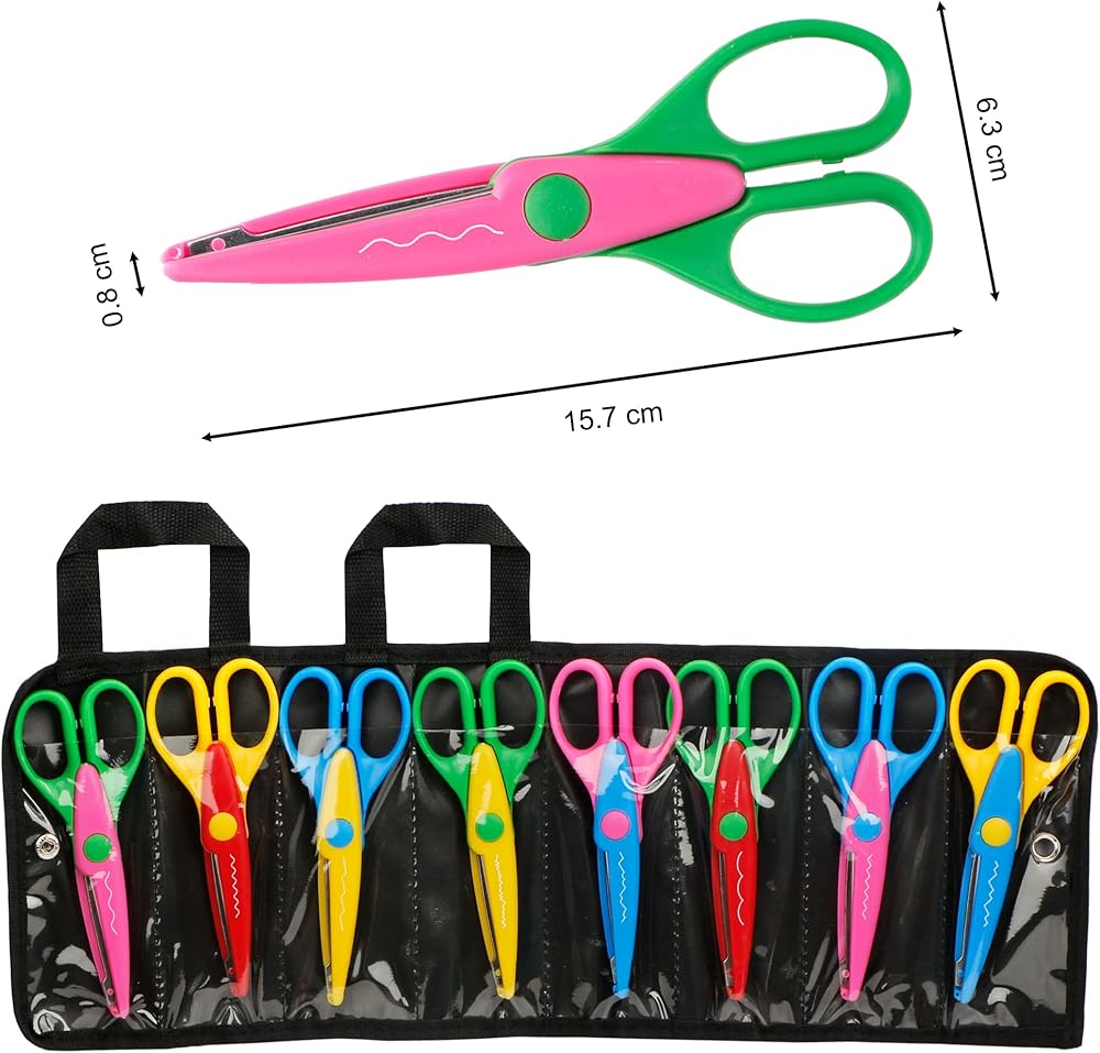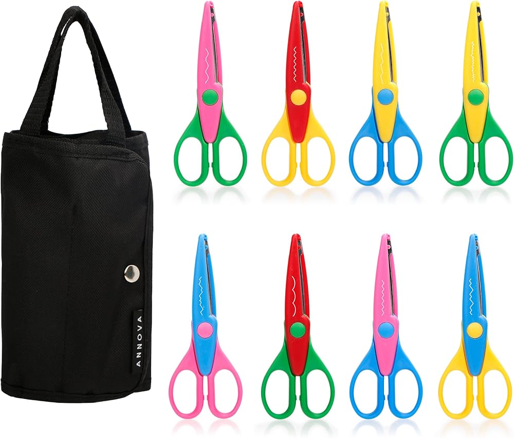 أنوفا 8 قطع من المقصات الفنية والحرف اليدوية التي تصنعها بنفسك مع حقيبة حمل/جيب حافة زخرفية للأطفال مقص نمط سجل القصاصات المرح