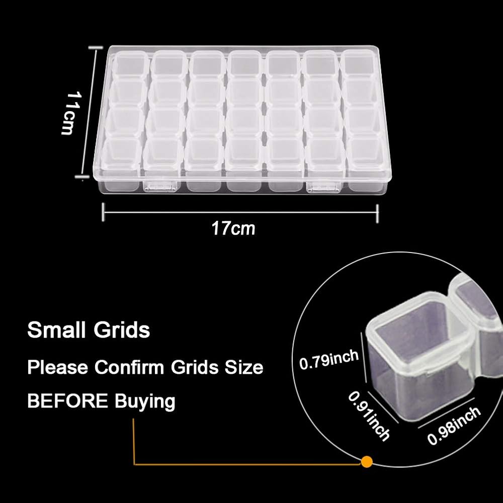 • حاويات تخزين الطلاء الماسي: يحتوي صندوق الرسم الماسي على 28 مخزنًا صغيرًا لحفر اللوحة الماسية مقسمة إلى 7 صفوف × 4 شبكات طلاء ألماس متصلة، 2 × 28 شبكة (إجمالي 56 شبكة) صناديق تخزين اللوحة الماسية مع 112 قطعة من ملصقات الملصقات لتصنيف خرز اللوحة الماسية المفضلة لديك بشكل مرتب