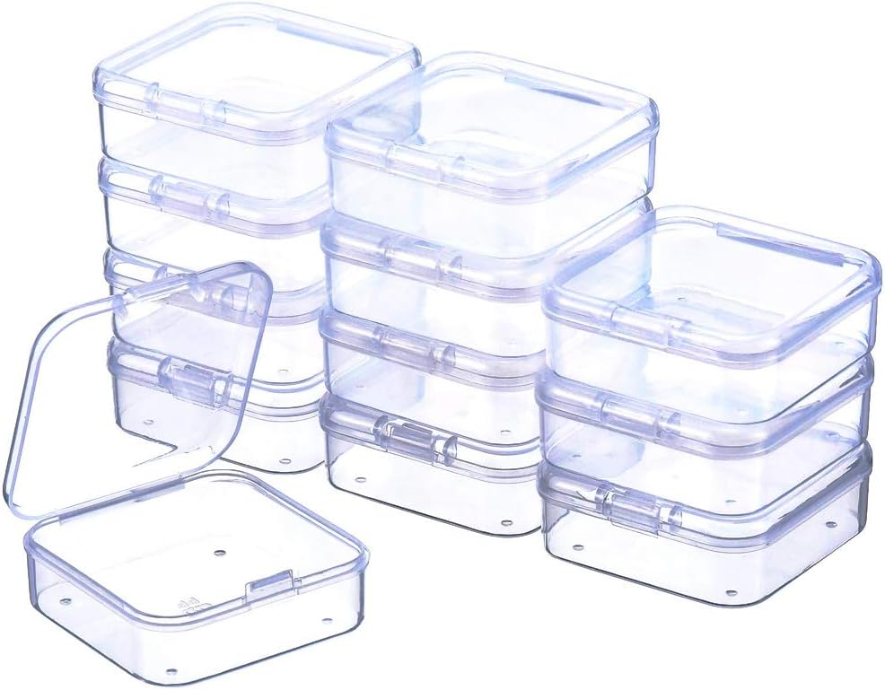 Duo&Gole 12 قطعة من حاويات تخزين الخرز البلاستيكي الشفاف مع أغطية قابلة للطي للعناصر حبوب منع الحمل نتائج المجوهرات حبة صغيرة (2.2 × 2.2 × 0.82 بوصة)