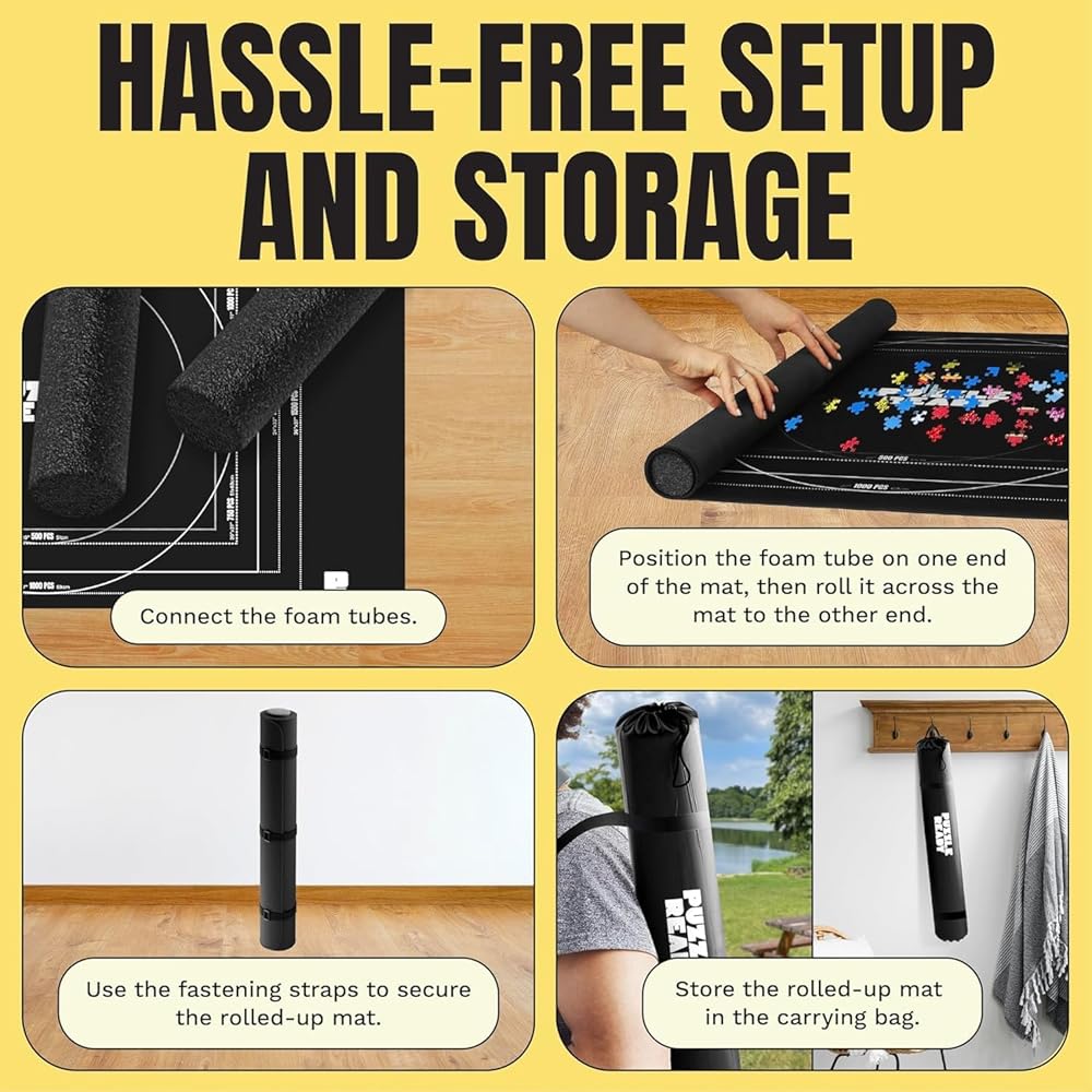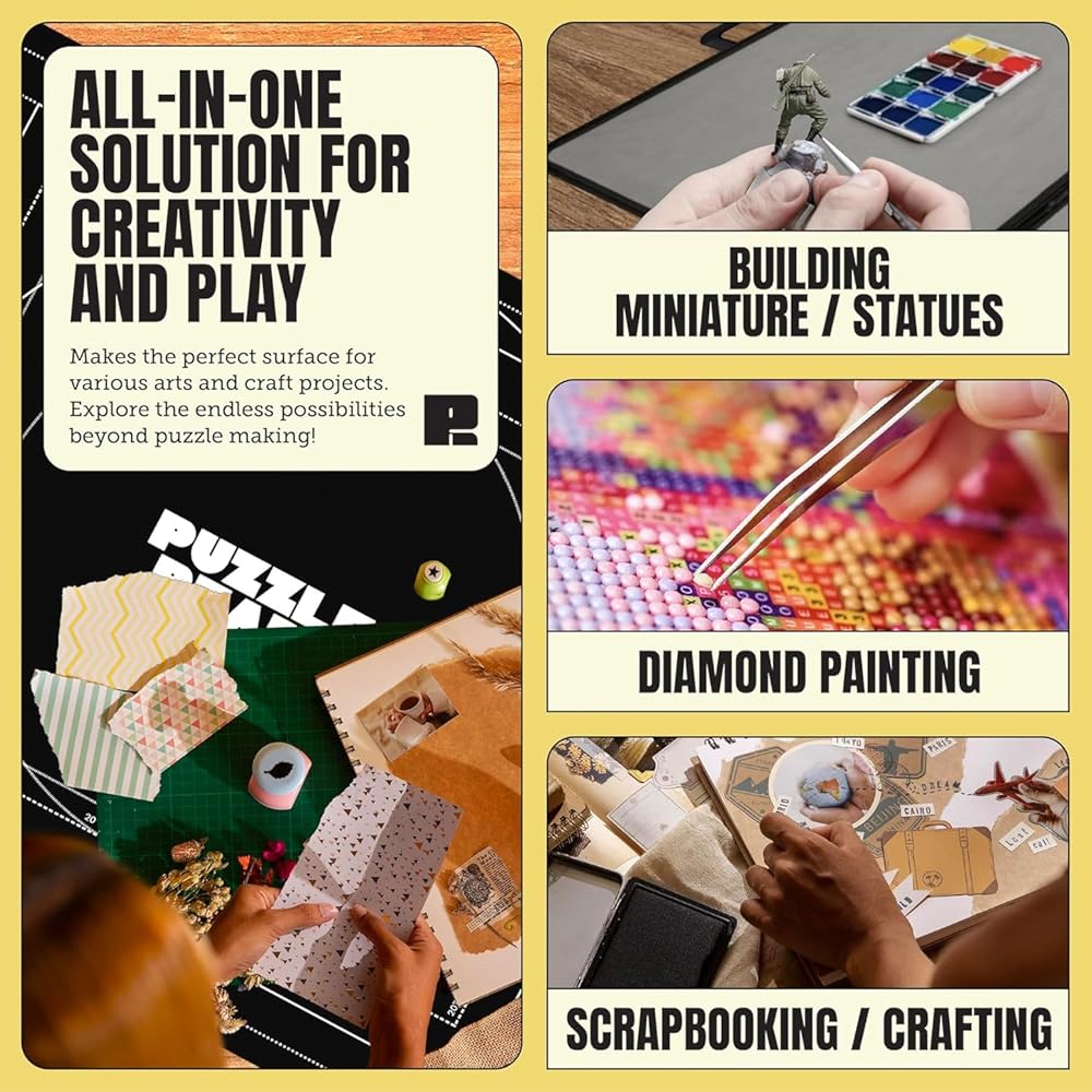 🧩 كن منظمًا - لا تدع لعبة الألغاز الخاصة بك تستحوذ على مساحتك. لوحة تخزين الألغاز الخاصة بنا هي طاولة ألغاز مثالية للبالغين أو أي شخص يريد الحفاظ على لوحات الألغاز الخاصة به منظمة ومخزنة بعيدًا عند عدم الاستخدام. مع منطقة عمل لوحة الألغاز القابلة للفصل، يمكنك الانتقال بسهولة من العمل على اللغز إلى تخزينه.